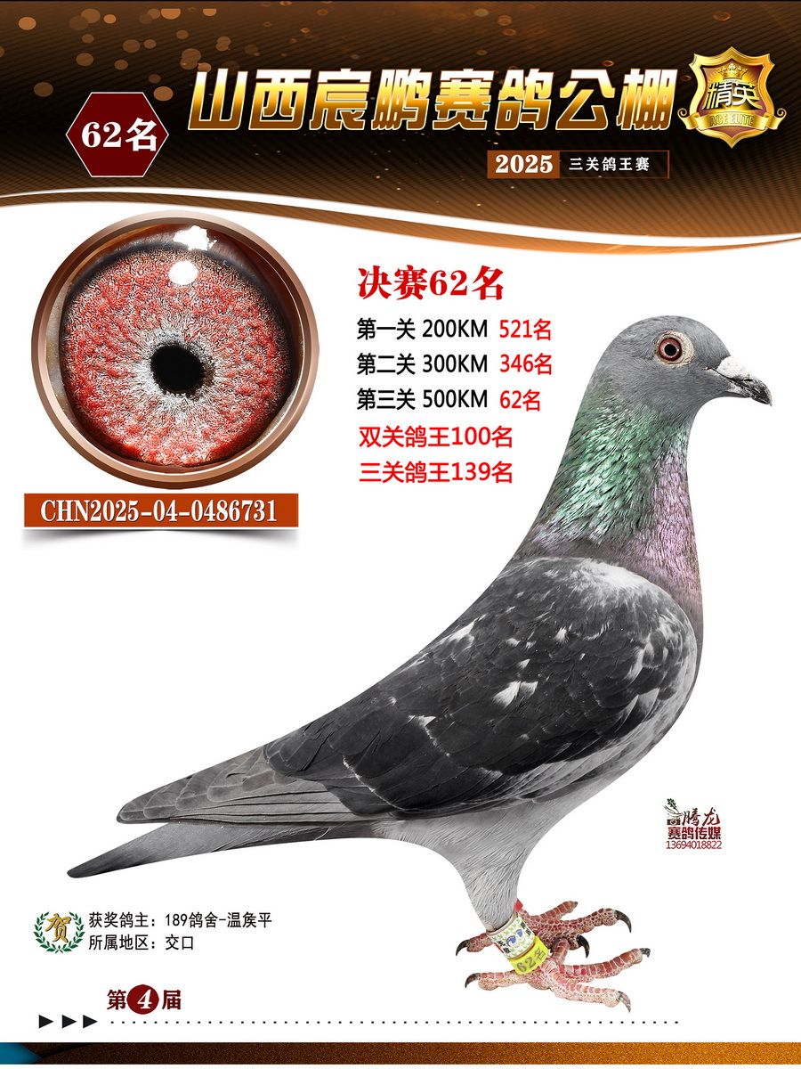 | 1628898 | 山西宸鵬決賽12名(三關(guān)鴿王冠軍)(雙關(guān)鴿王6名) | ¥500元 | 2次 |