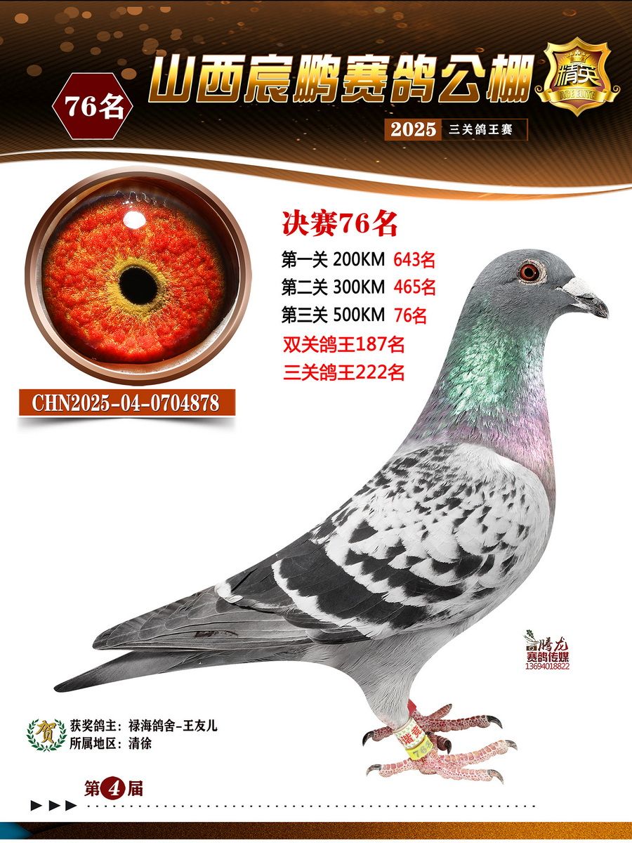 | 1628898 | 山西宸鵬決賽12名(三關(guān)鴿王冠軍)(雙關(guān)鴿王6名) | ¥500元 | 2次 |