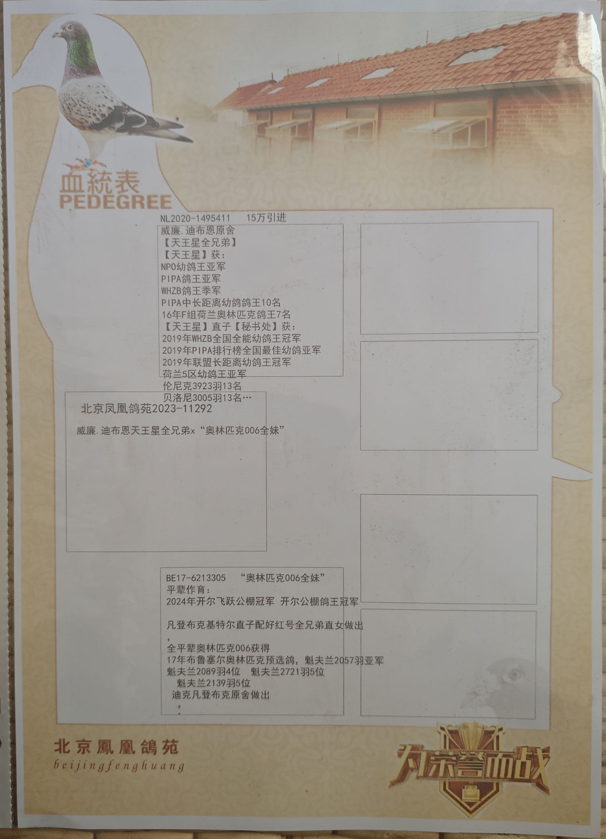 | 1629619 | 北京鳳凰鴿苑:超級麥克斯X奧林匹克006全妹 | ¥0元 | 0次 |