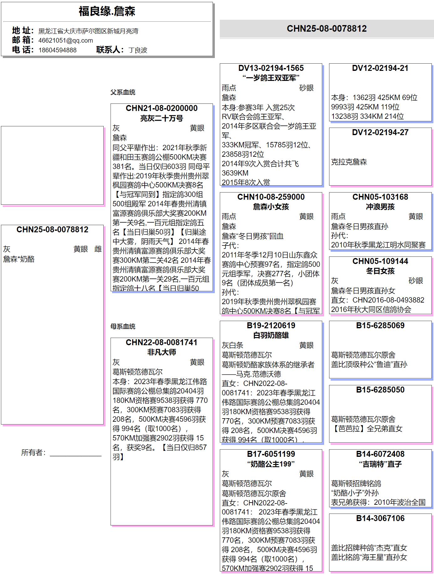 曾外祖父:B14-6072408 葛斯頓招牌銘鴿“奶酪小子”外孫