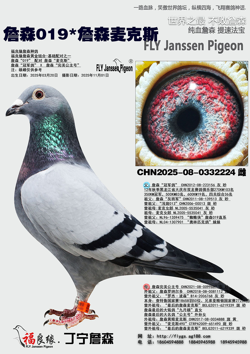 父:詹森“冠軍鴿” CHN2012-08-223156 灰 砂