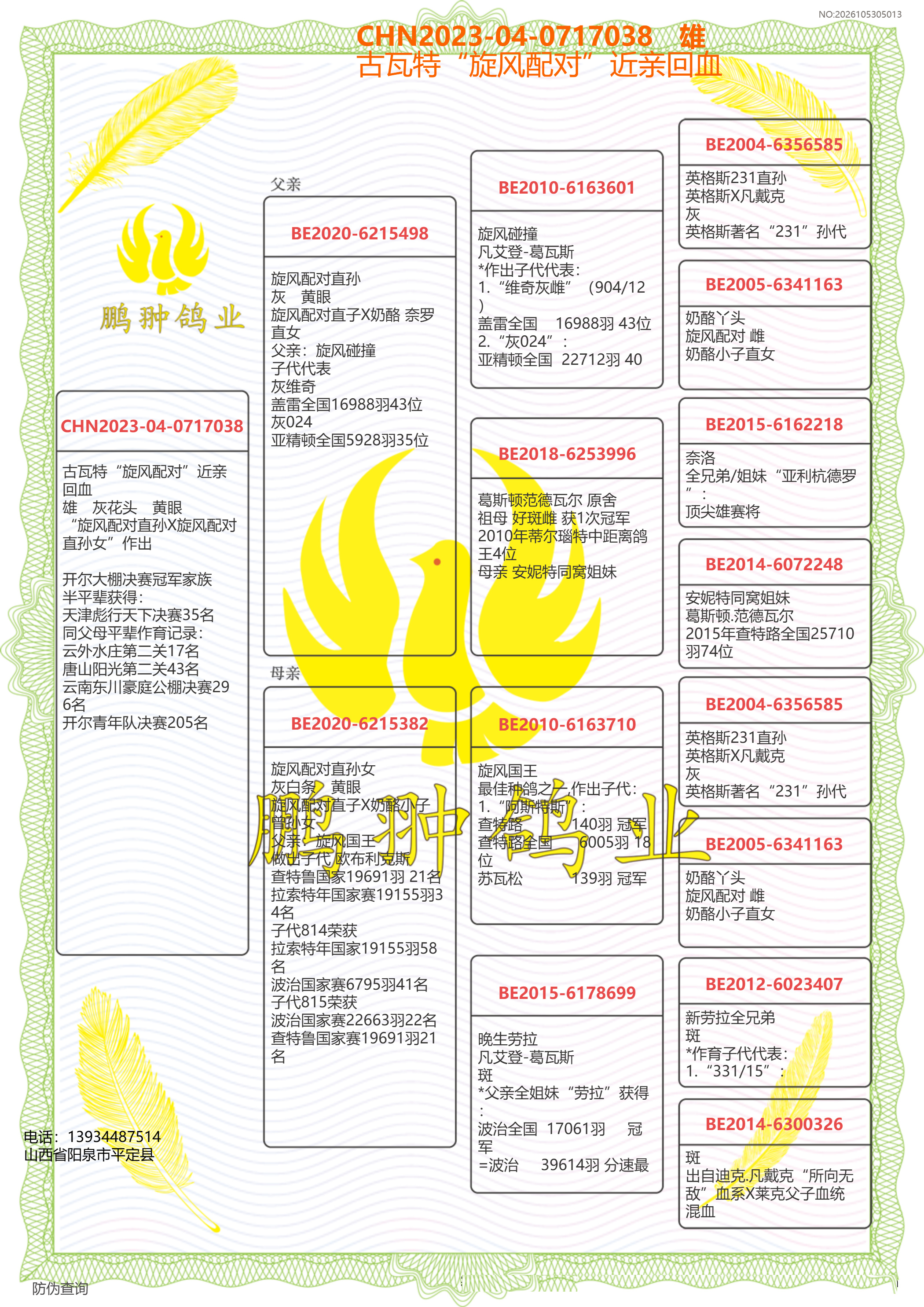 - 當(dāng)前查看拍賣鴿:古瓦特“旋風(fēng)配對(duì)”近親回血