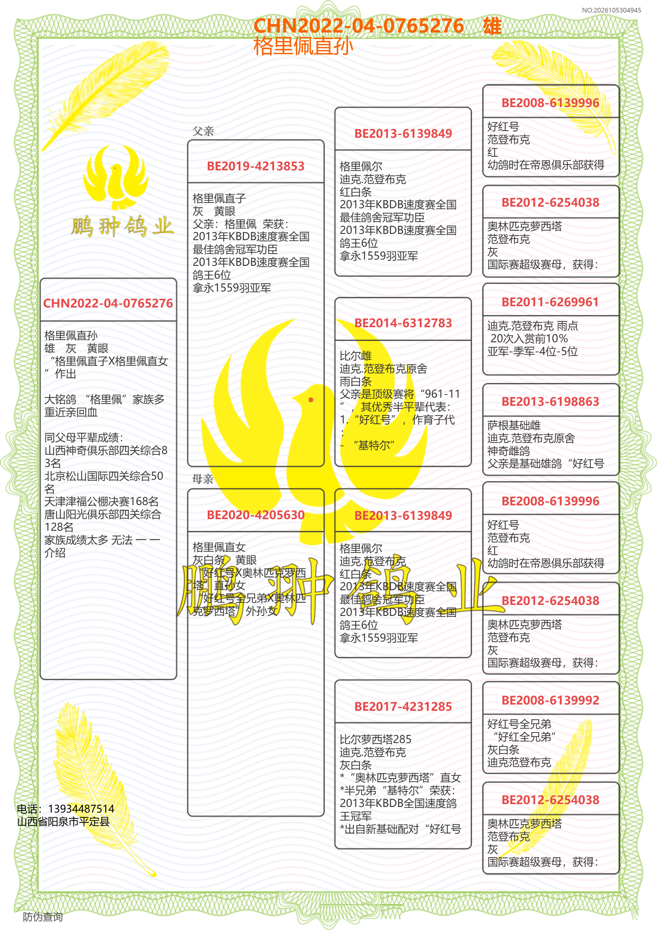 大銘鴿 “格里佩”家族多重近親回血