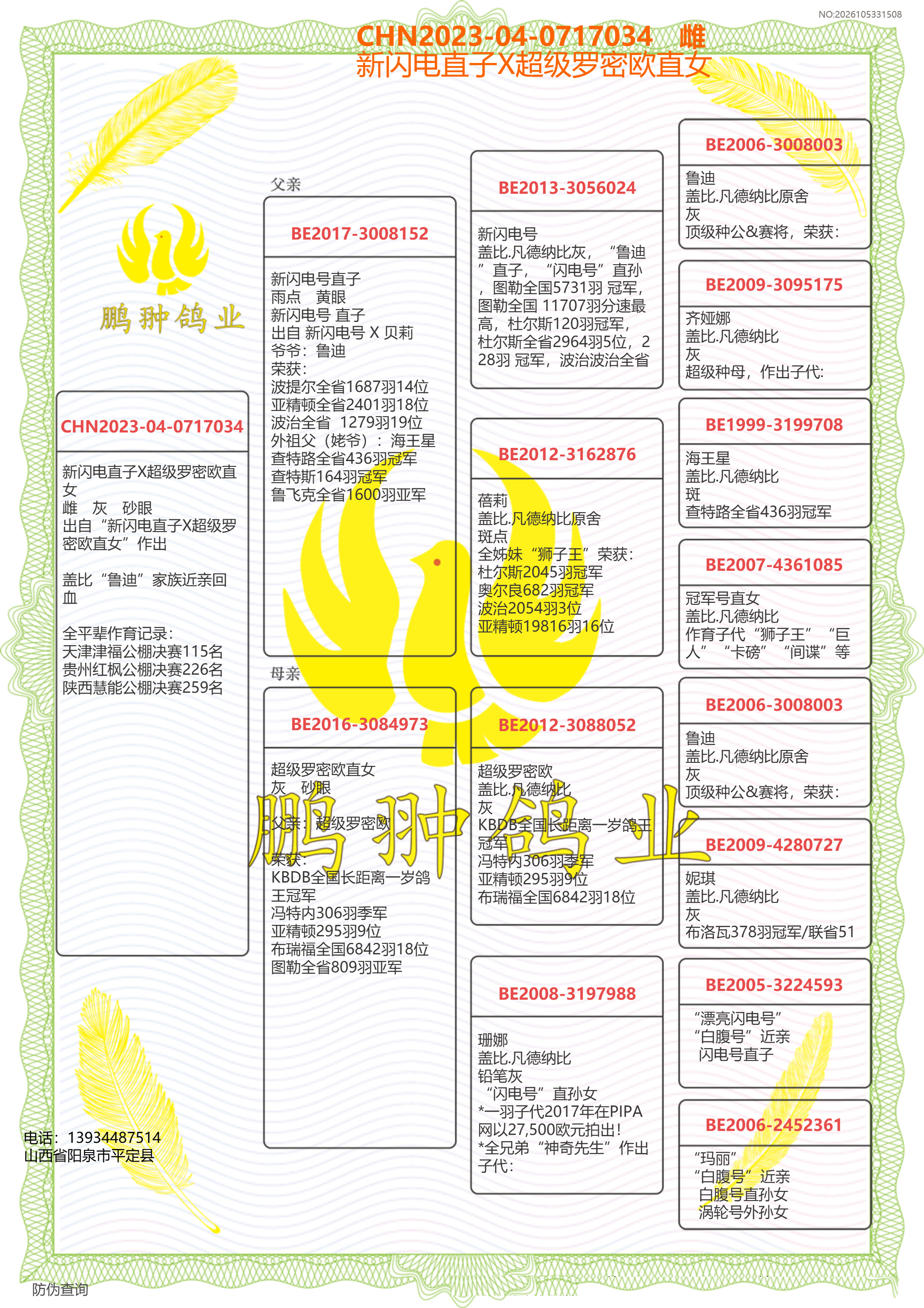 - 血統(tǒng)書:查看大圖