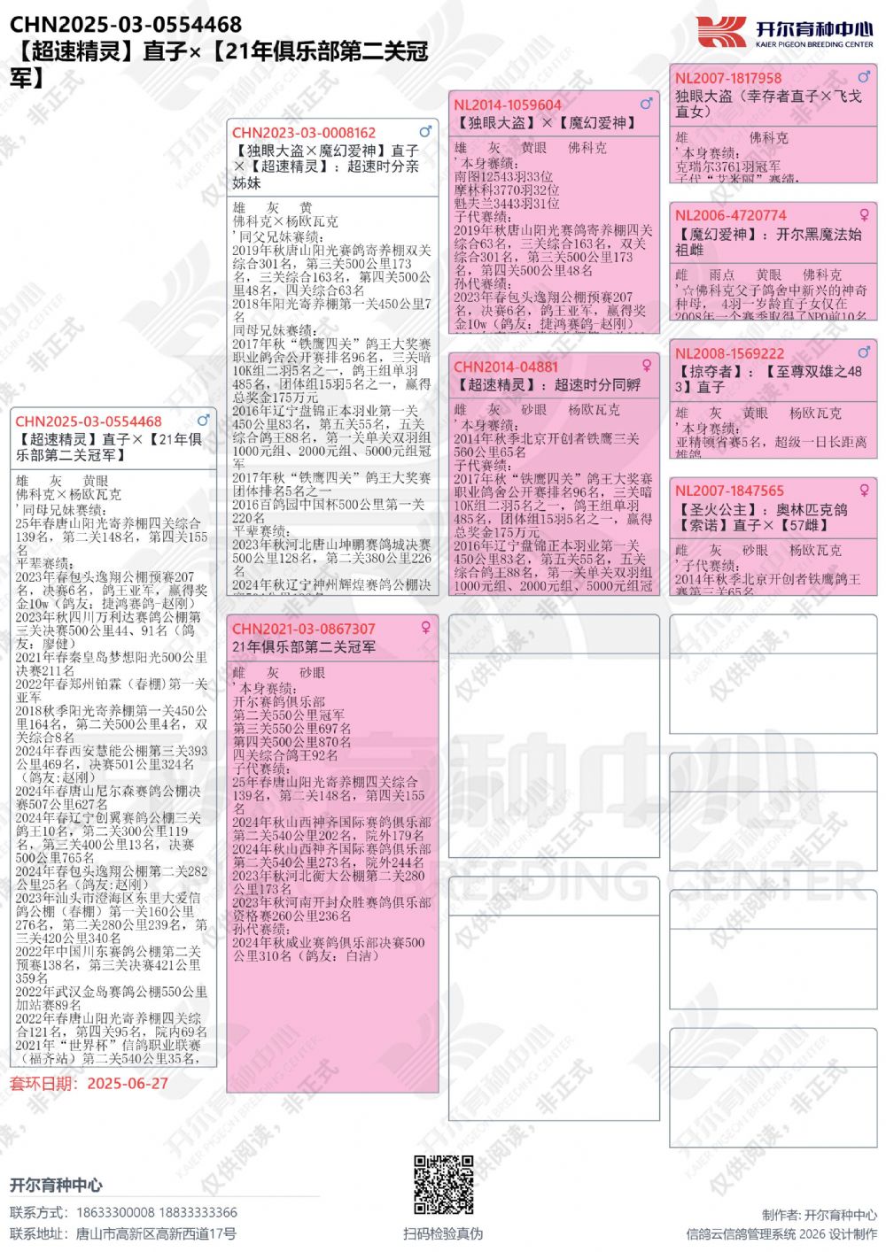 | 1650860 | 神鷹300直子×開(kāi)爾大棚三關(guān)鴿王季軍直孫女 | ¥3000元 | 1次 |