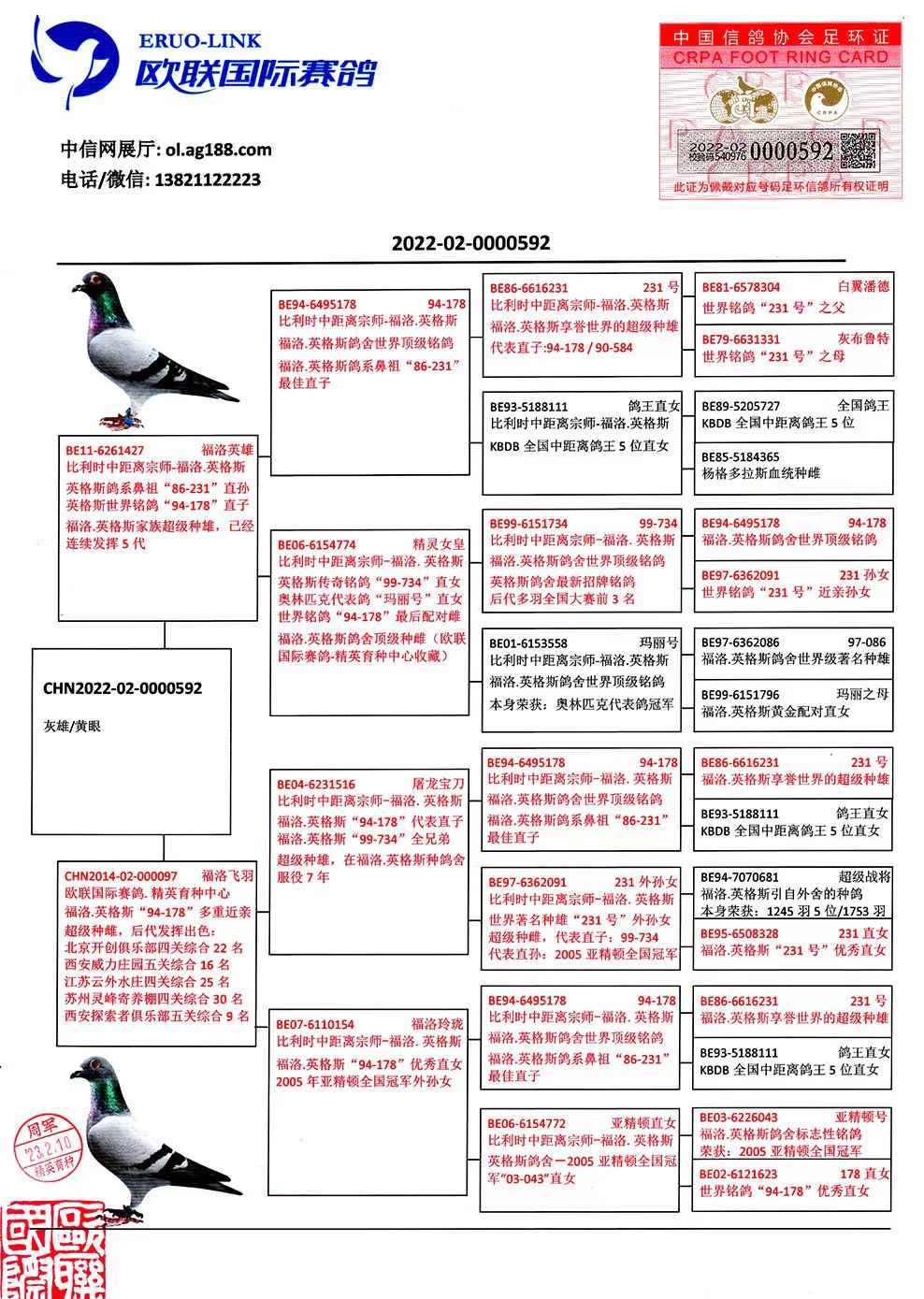 | 1651522 | 歐聯(lián)240近親 ,已作育公棚入賞,這是買(mǎi)過(guò)歐聯(lián)最漂亮最完美的 | ¥3100元 | 13次 |