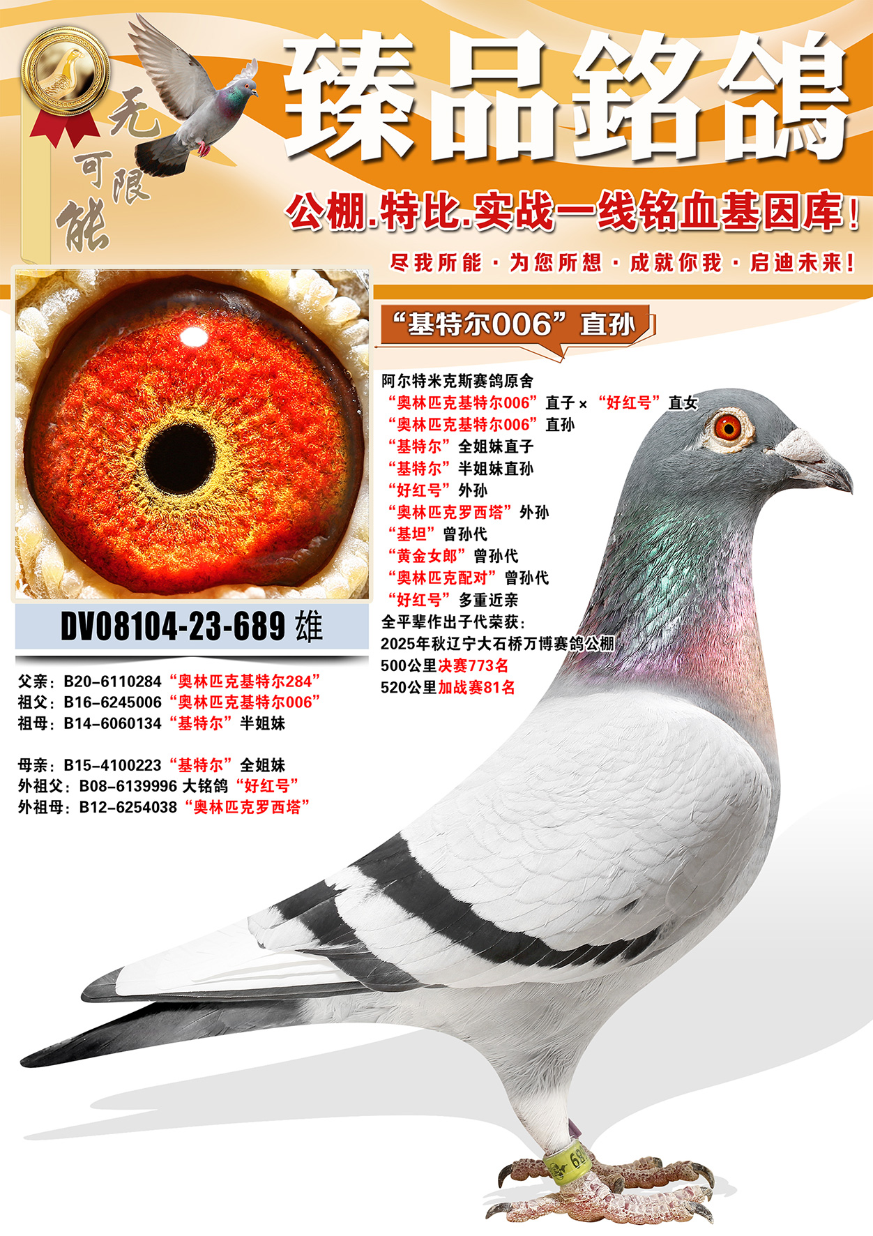 所有拍賣鴿全部血統(tǒng)真實。人鑒鴿觀點不一,飛不飛天上見.血統(tǒng)成績第一