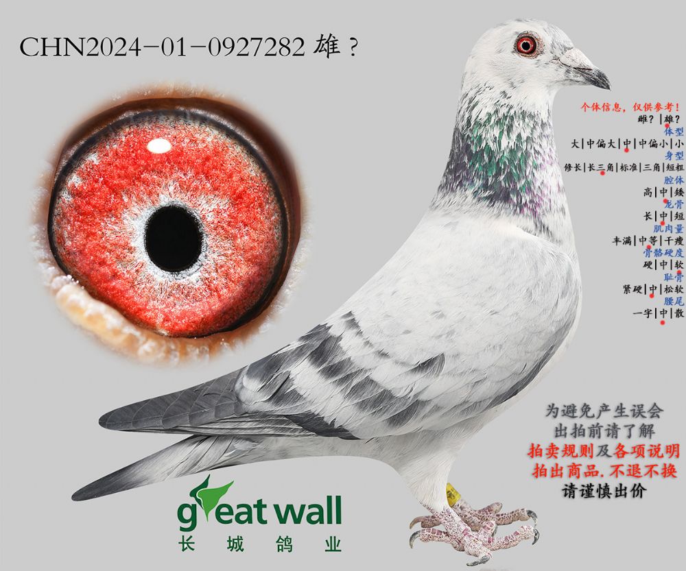 因拍賣鴿均是未做育過的種鴿或幼鴿,圖內(nèi)所標雌雄僅供參考,實際性別已實物為準。不做退換理由。