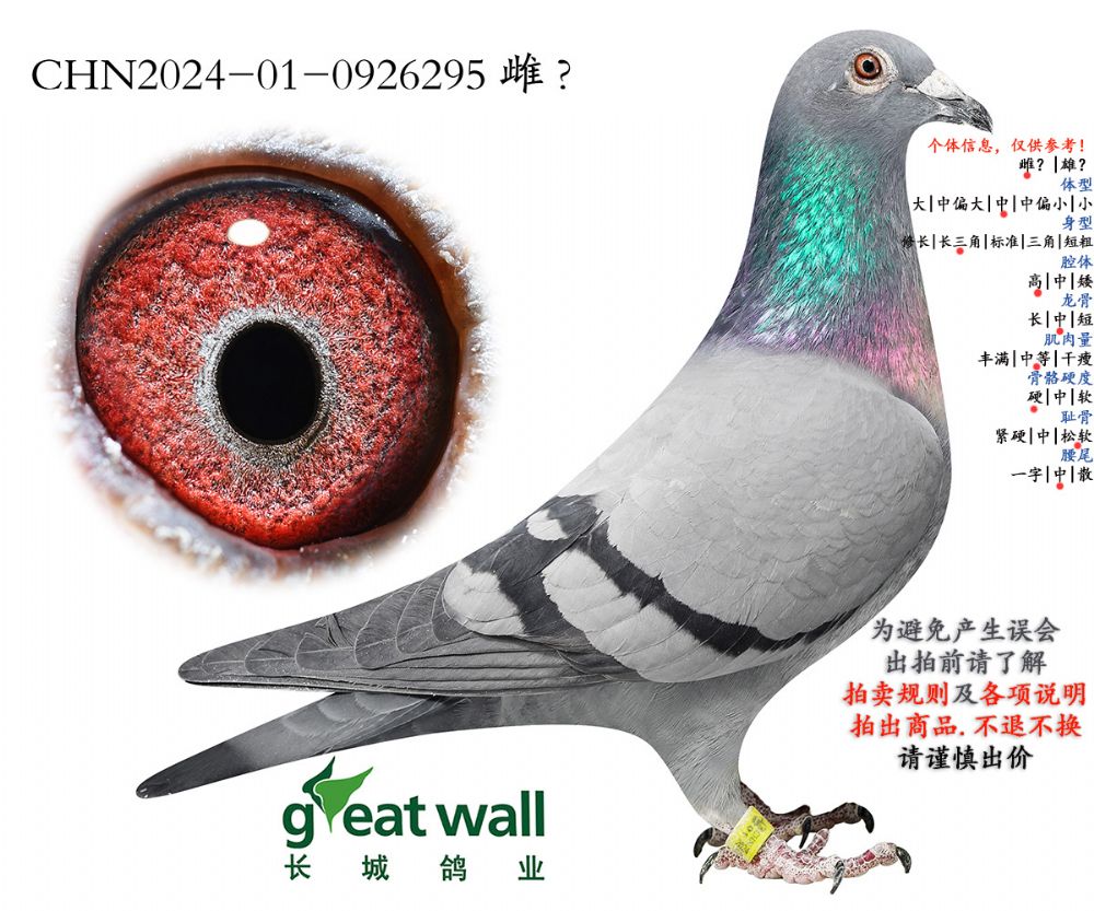 因拍賣鴿均是未做育過的種鴿或幼鴿,圖內(nèi)所標雌雄僅供參考,實際性別已實物為準。不做退換理由。