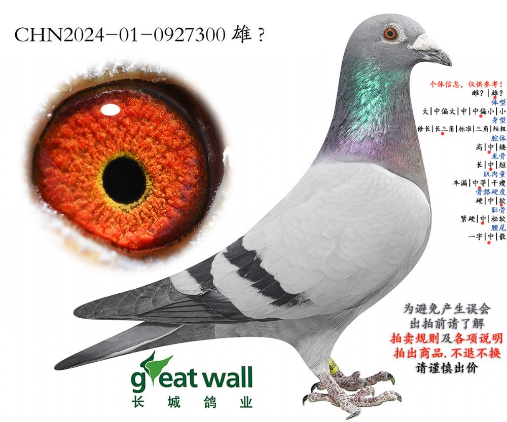 因拍賣鴿均是未做育過的種鴿或幼鴿,圖內(nèi)所標(biāo)雌雄僅供參考,實(shí)際性別已實(shí)物為準(zhǔn)。不做退換理由。