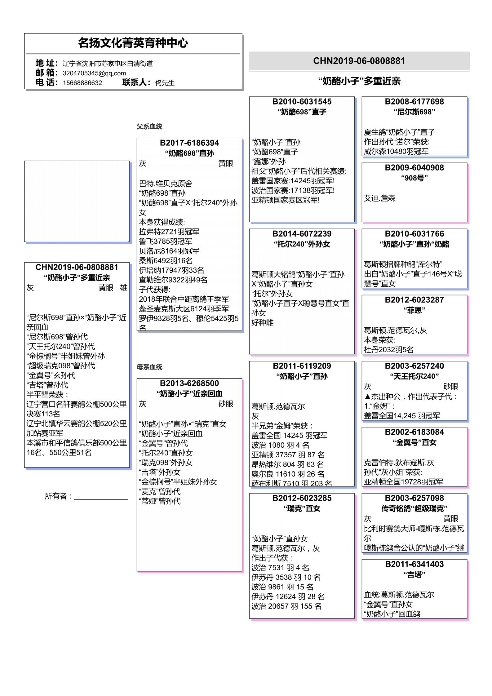 所有拍賣鴿全部血統(tǒng)真實(shí)。人鑒鴿觀點(diǎn)不一,飛不飛天上見.血統(tǒng)成績第一