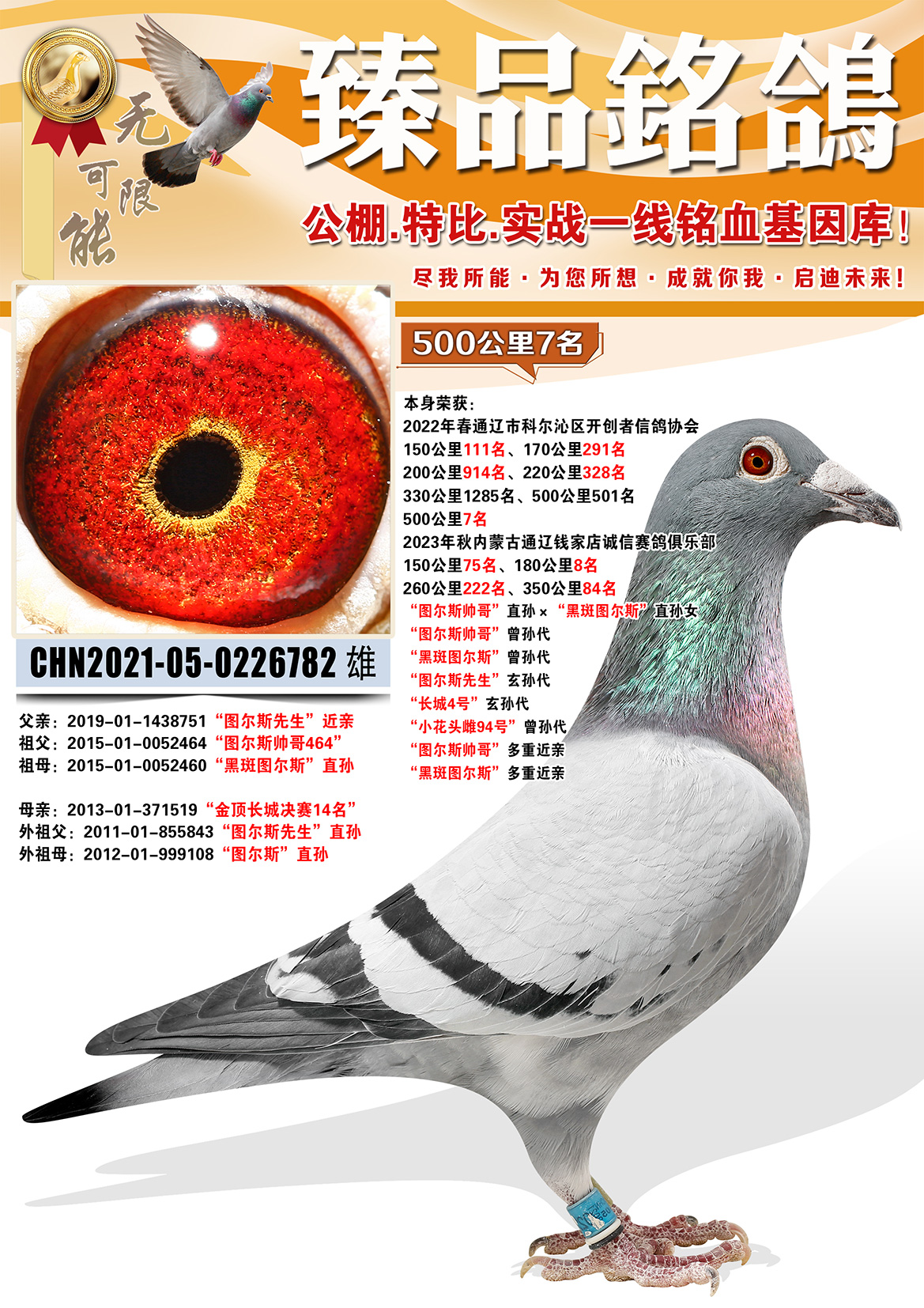 所有拍賣鴿全部血統(tǒng)真實!個人鑒鴿觀點不一,飛不飛天上見.血統(tǒng)成績第一
