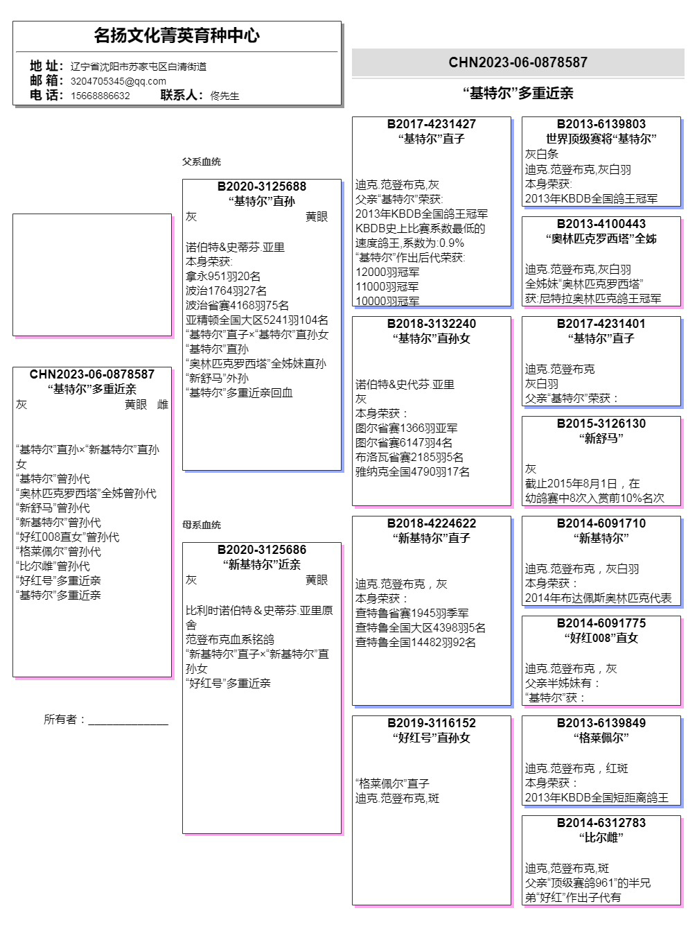 所有拍賣鴿全部血統(tǒng)真實(shí)。人鑒鴿觀點(diǎn)不一,飛不飛天上見.血統(tǒng)成績第一