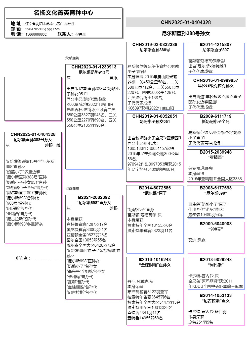 所有拍賣鴿全部血統(tǒng)真實(shí)。(gè)人鑒鴿觀點(diǎn)不一,飛不飛天上見.血統(tǒng)成績第一