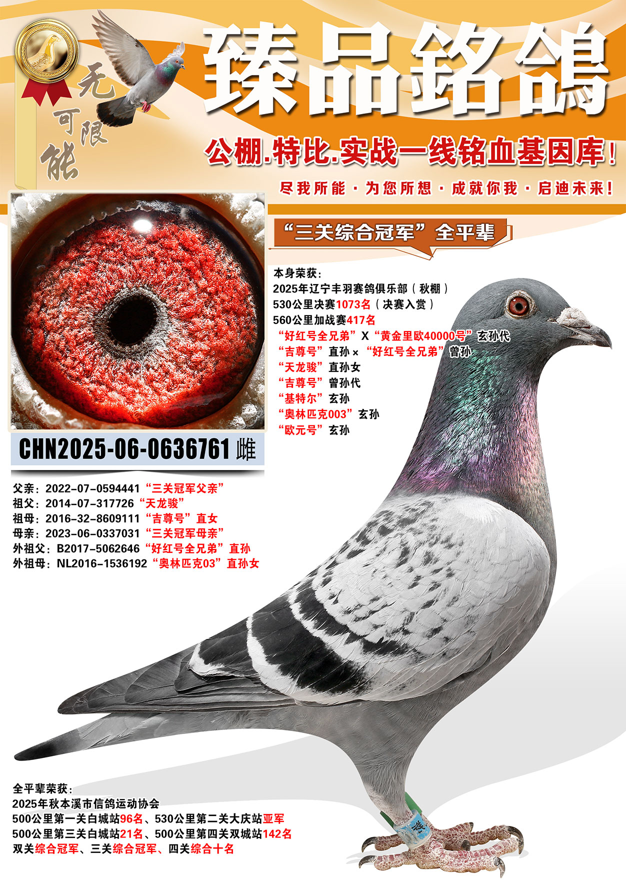 300公里預(yù)賽12名、500公里決賽17名、雙關(guān)鴿王亞軍
