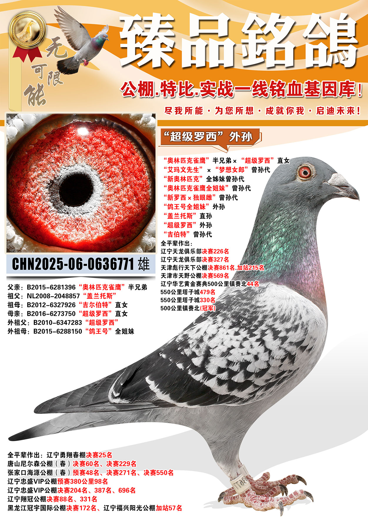 所有拍賣鴿全部血統(tǒng)真實!!個人鑒鴿觀點不一,飛不飛天上見.血統(tǒng)成績第一
