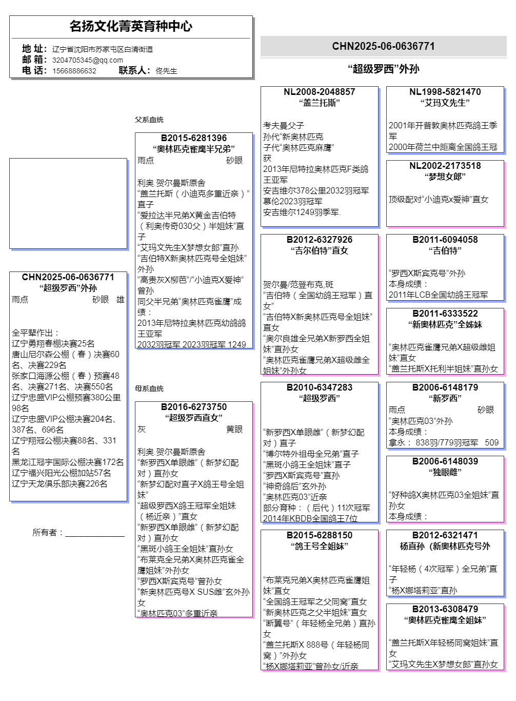 【關(guān)于血統(tǒng)書】所有拍賣鴿有血統(tǒng)書或者獎杯的本舍都以上傳‘沒上傳就表示沒有’