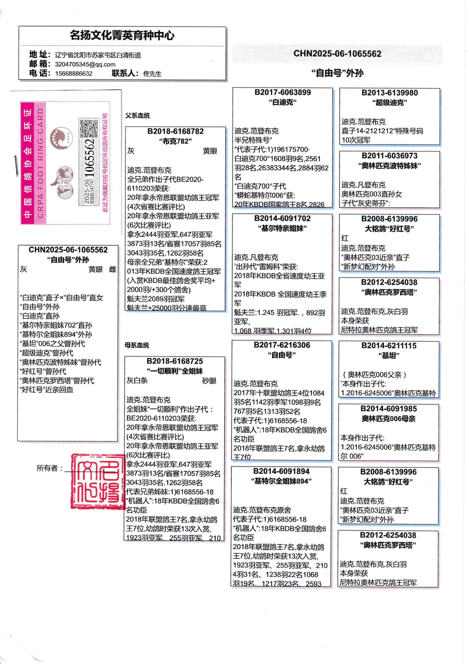 所有拍賣鴿全部血統(tǒng)真實(shí)!!個(gè)人鑒鴿觀點(diǎn)不一,飛不飛天上見.血統(tǒng)成績(jī)第一