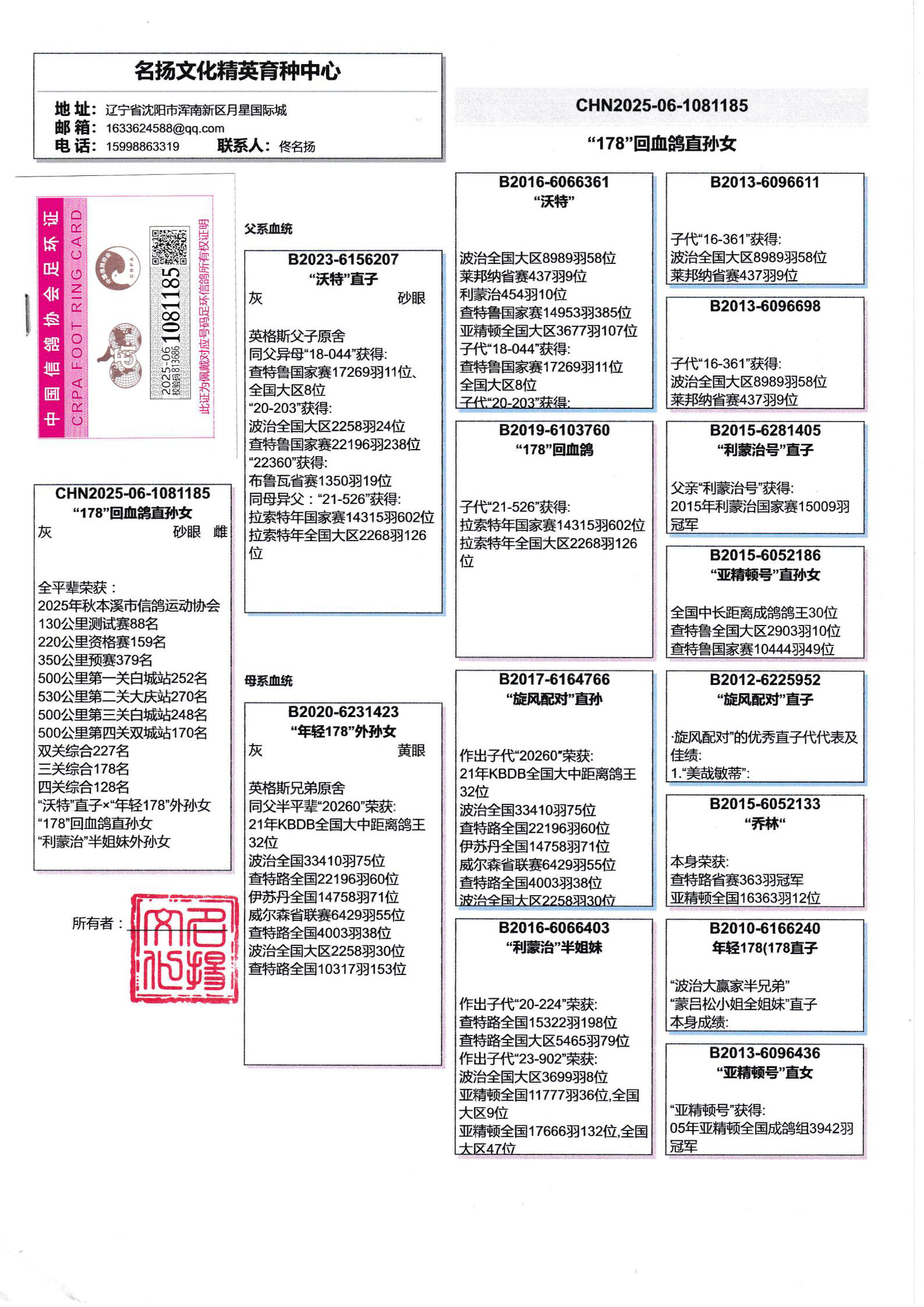 【關(guān)于血統(tǒng)書】所有拍賣鴿有血統(tǒng)書或者獎杯的本舍都以上傳‘沒上傳就表示沒有’