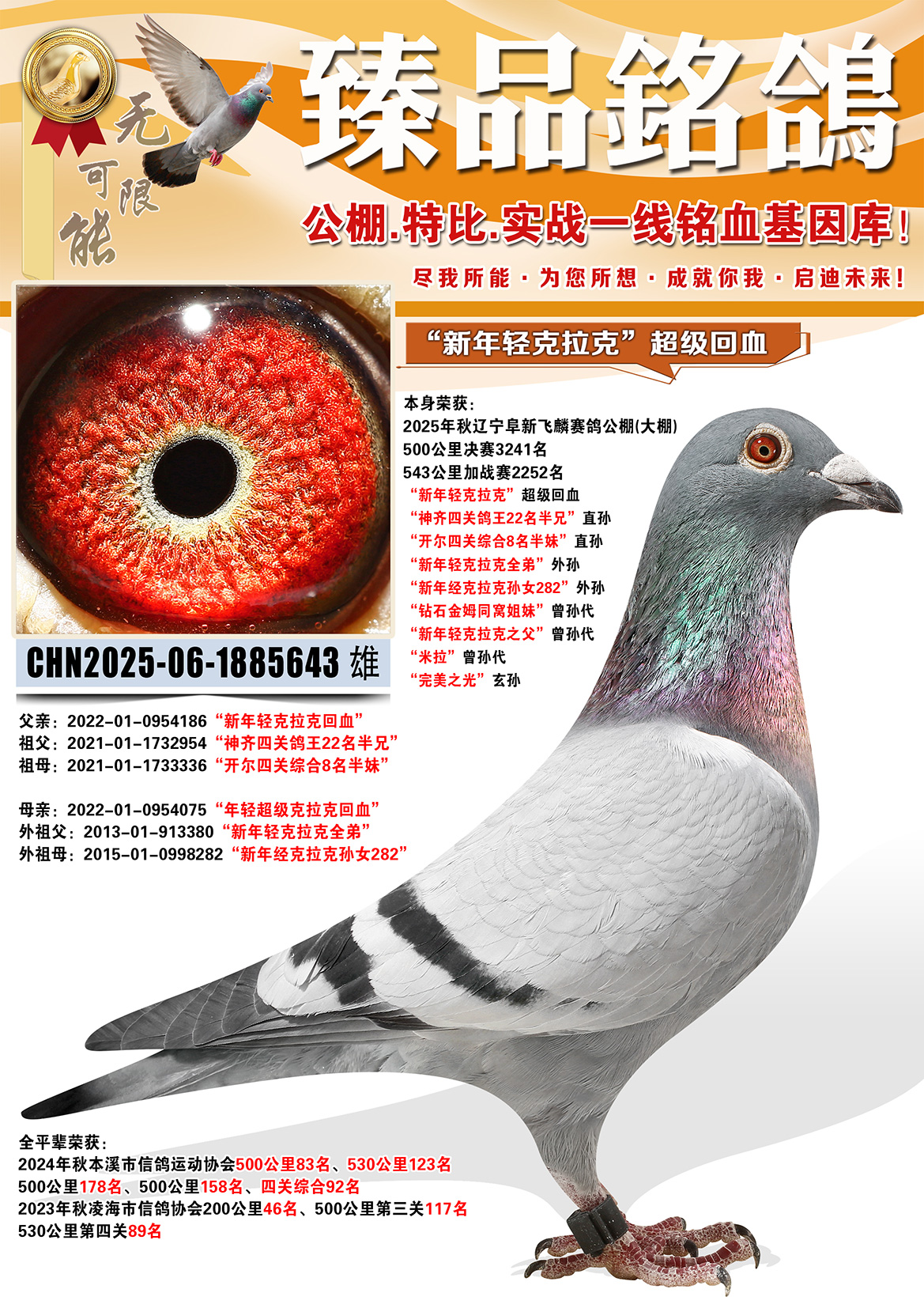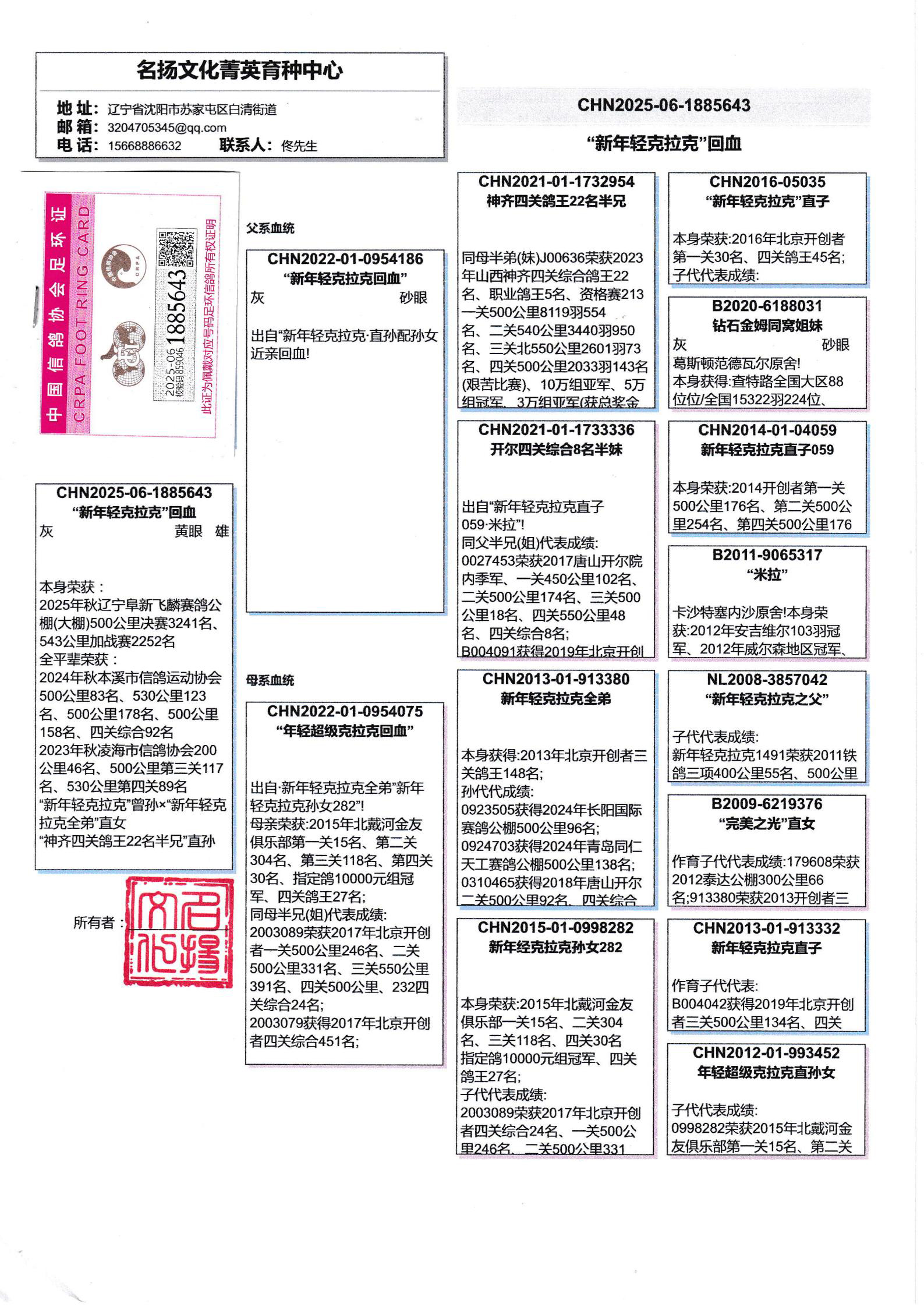 祖父:CHN2021-01-1732954“神齊四關(guān)鴿王22名半兄”