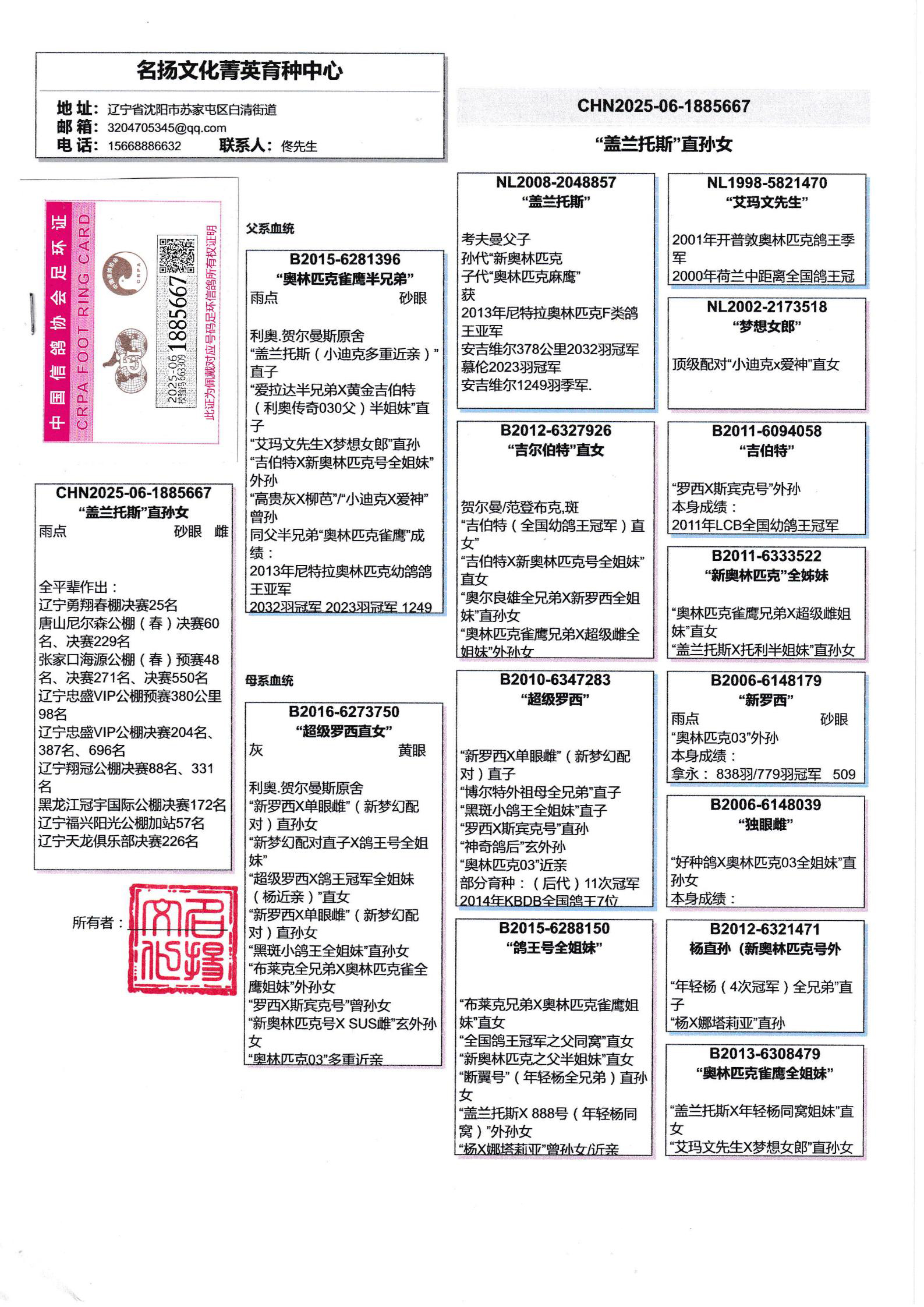 外祖母:B2015-6288150“鴿王號(hào)全姐妹”