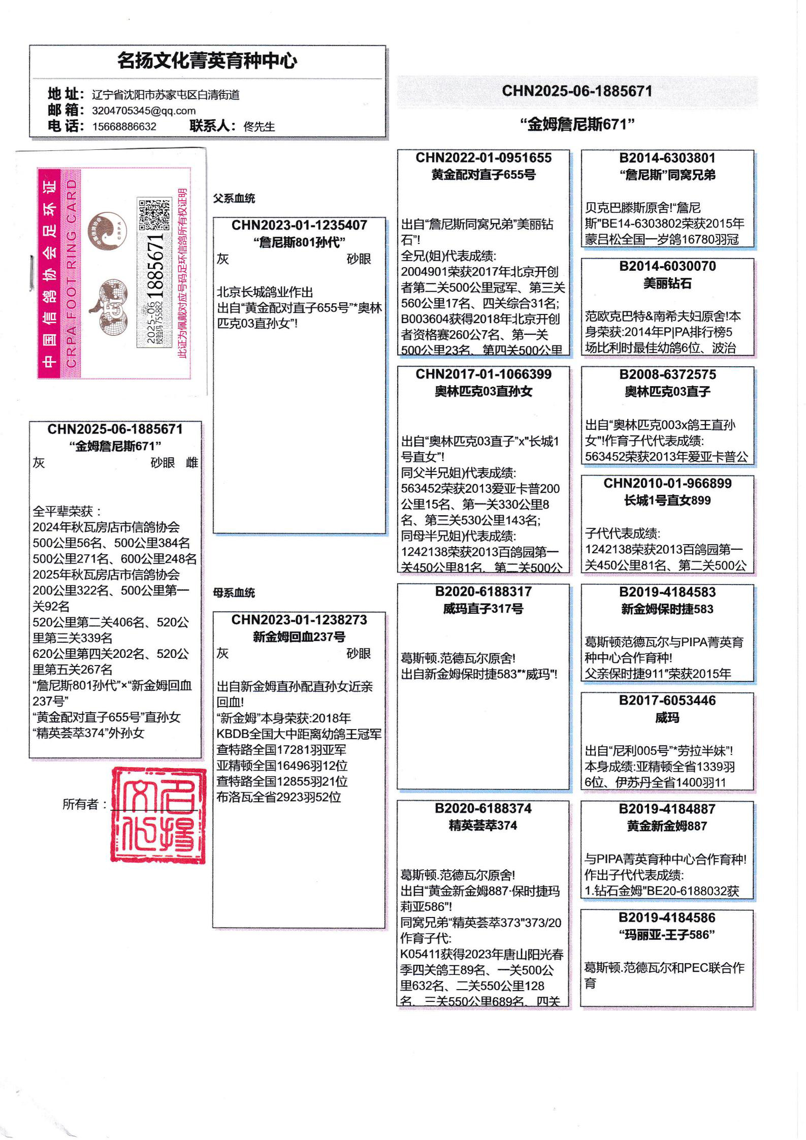 所有拍賣鴿全部血統(tǒng)真實。人鑒鴿觀點不一,飛不飛天上見.血統(tǒng)成績第一