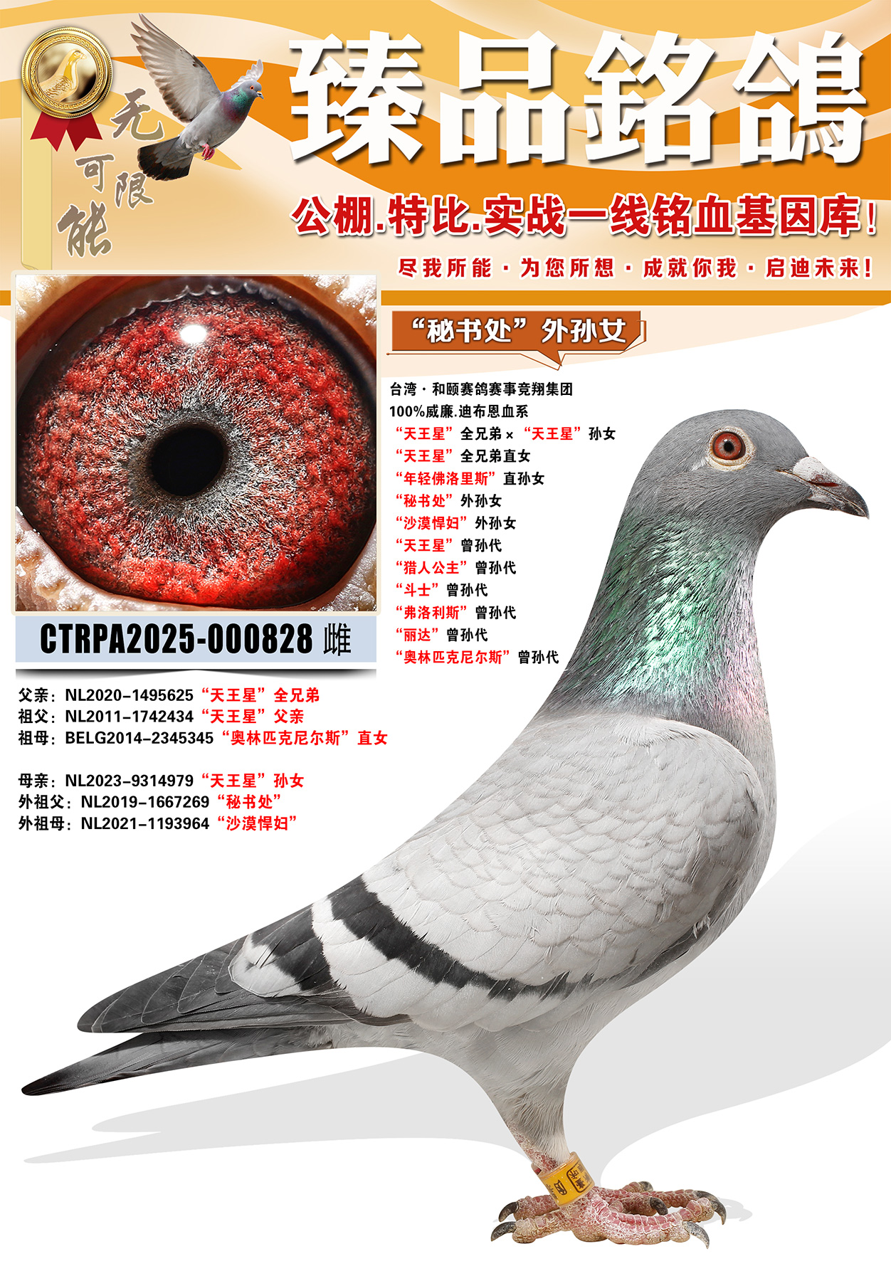 頂級賽鴿及種鴿!本身榮獲: