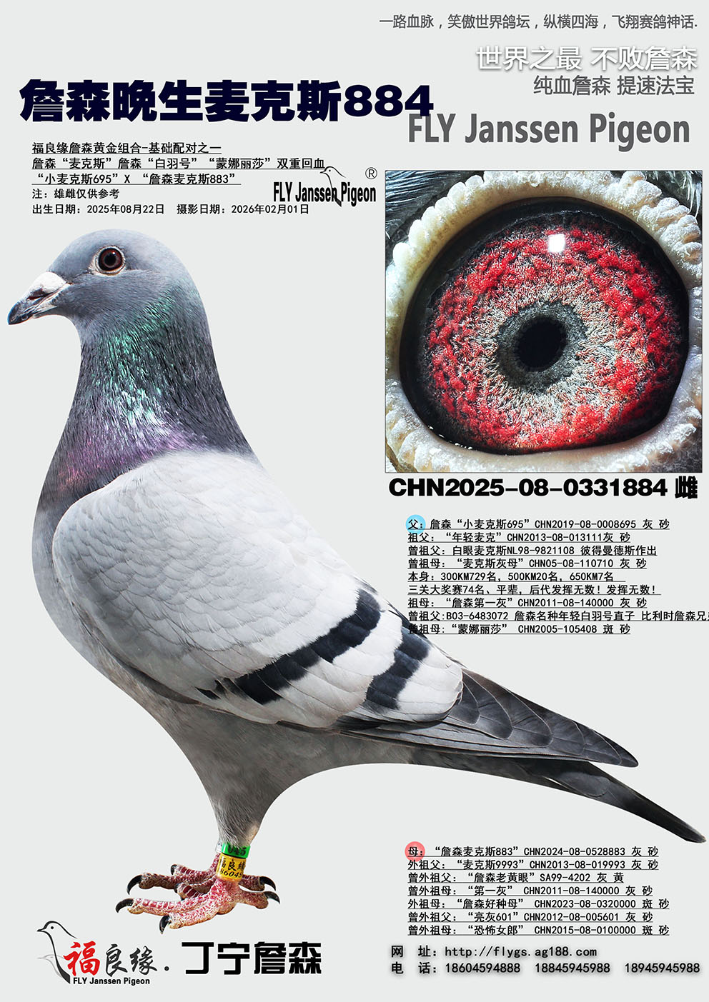曾祖父:B03-6483072 詹森名種年輕白羽號直子 比利時詹森兄弟作Jansse