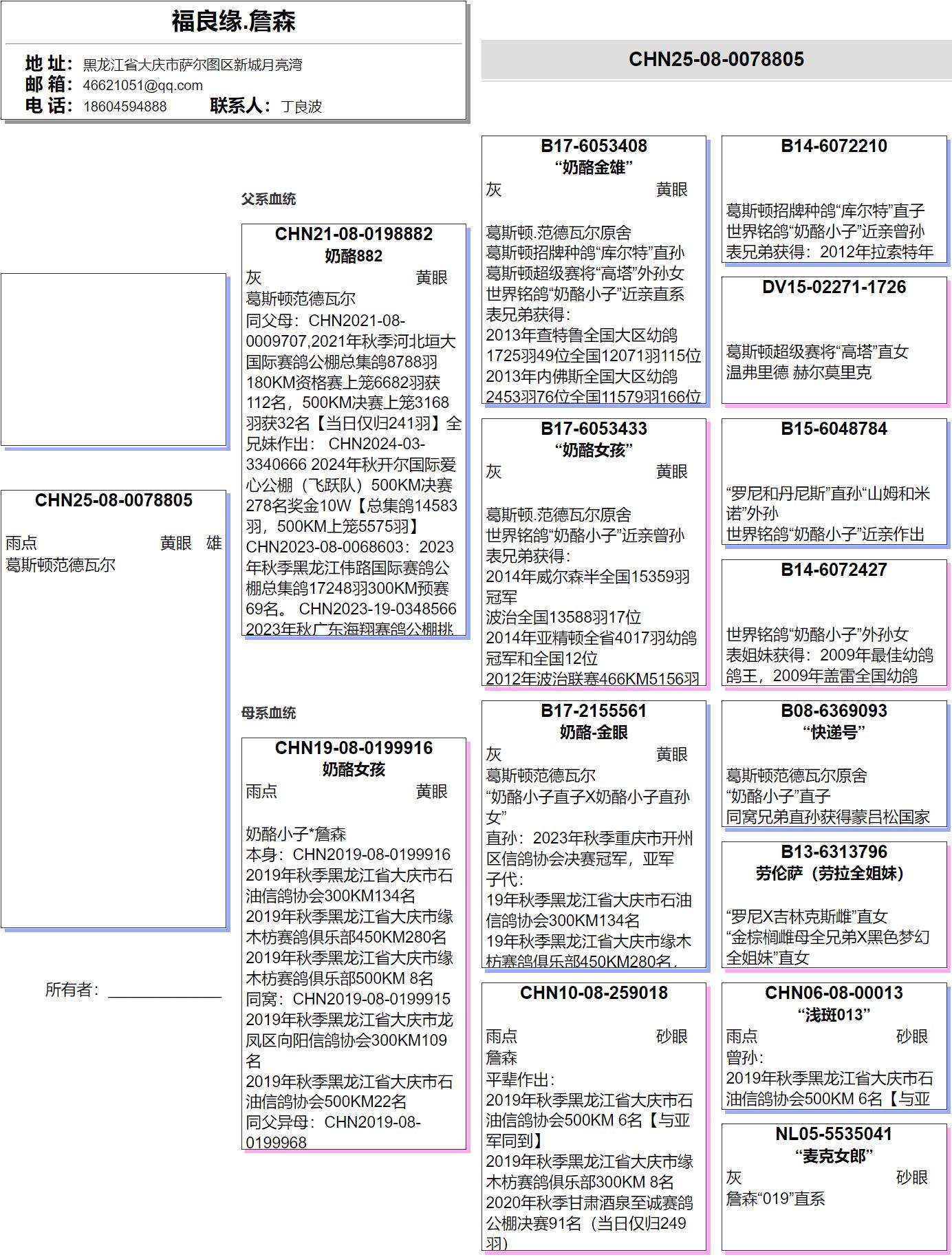 曾祖母:B14-6072427 世界銘鴿“奶酪小子”外孫女