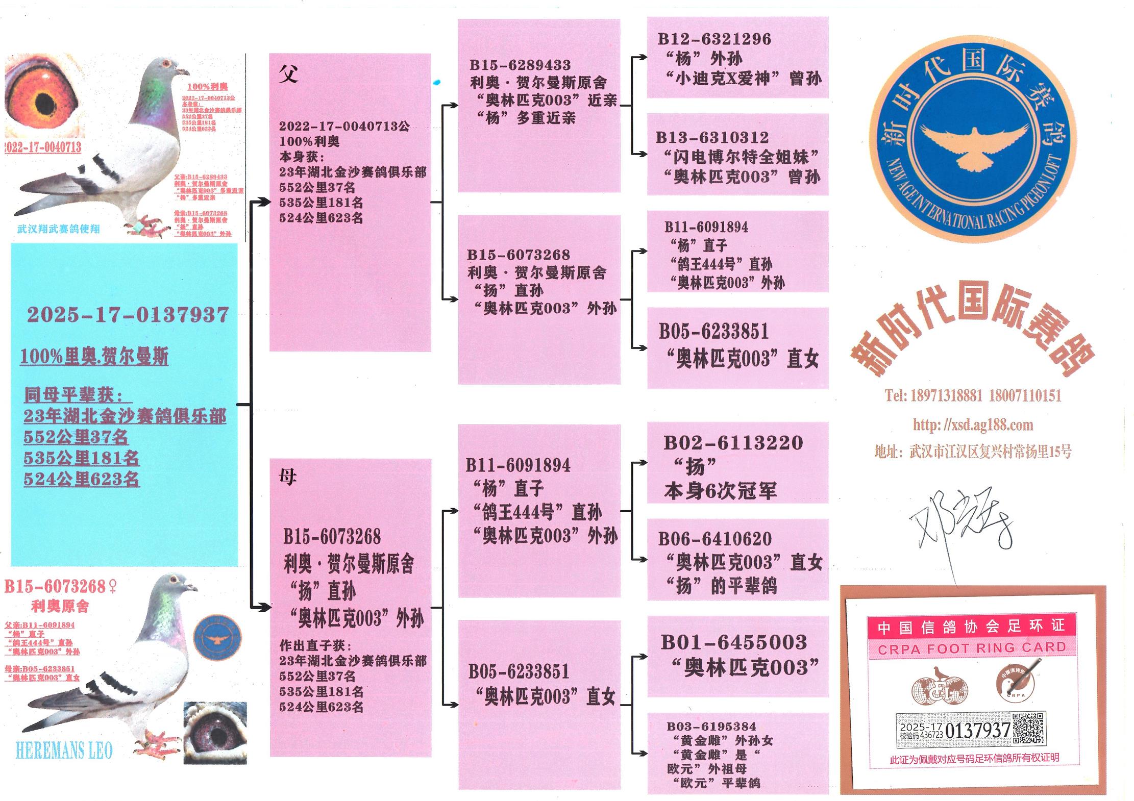 利奧成績(jī)鴿552公里37名x奧林匹克003孫女