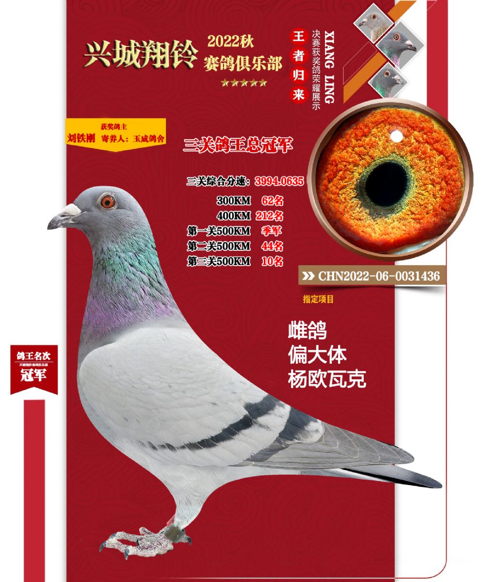 22年秋季三關鴿王總冠軍,特比環(huán)冠軍