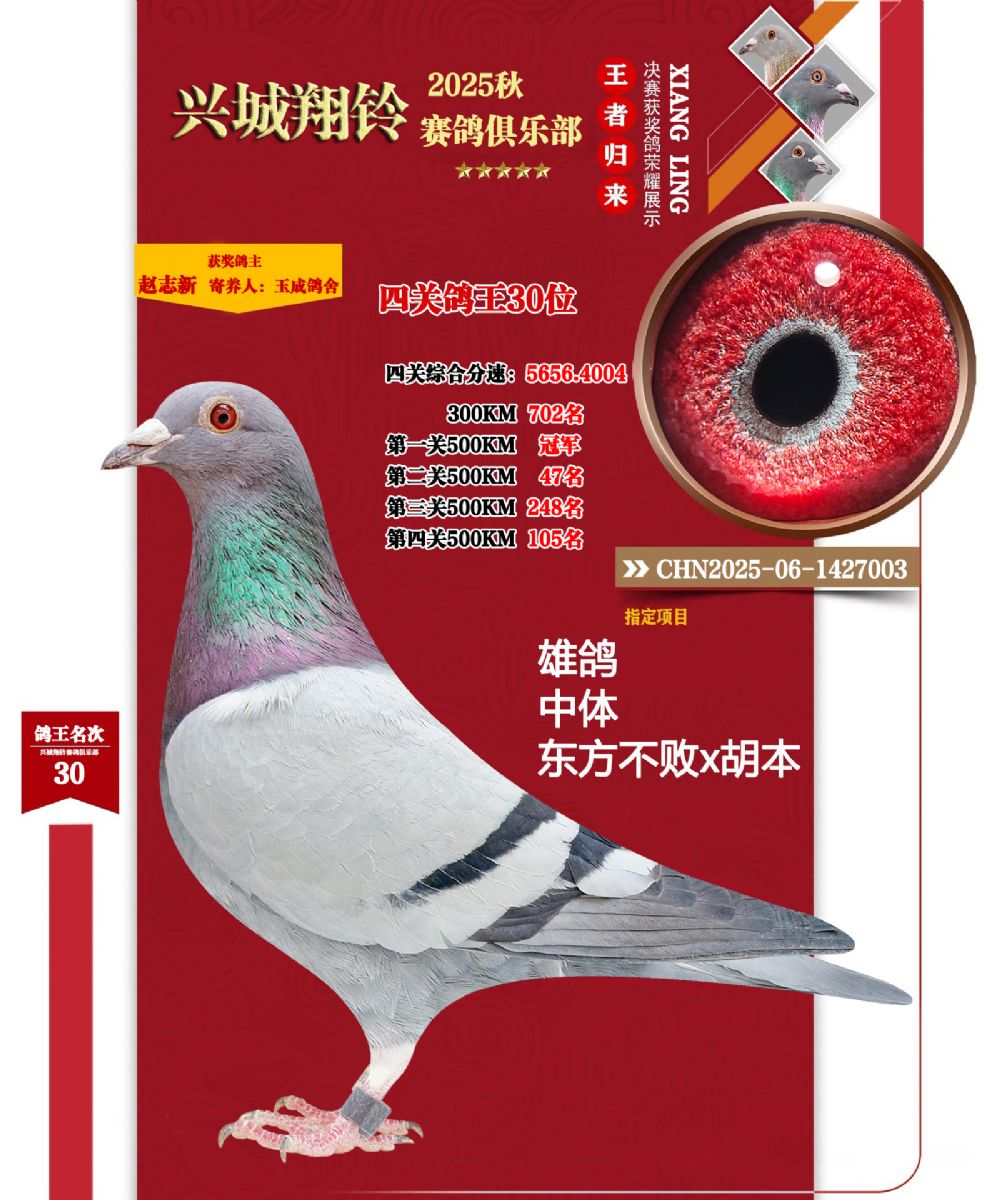 本身2025年秋季500公里冠軍,四關(guān)鴿王30位