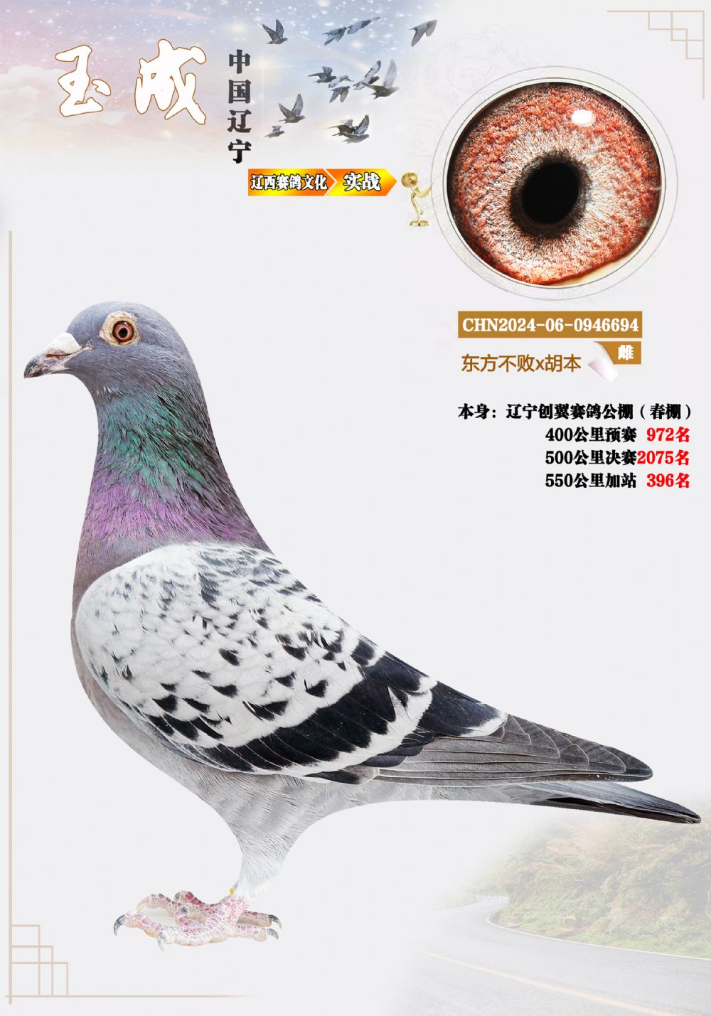 遼寧創(chuàng)翼春棚400公里972名,550公里396名