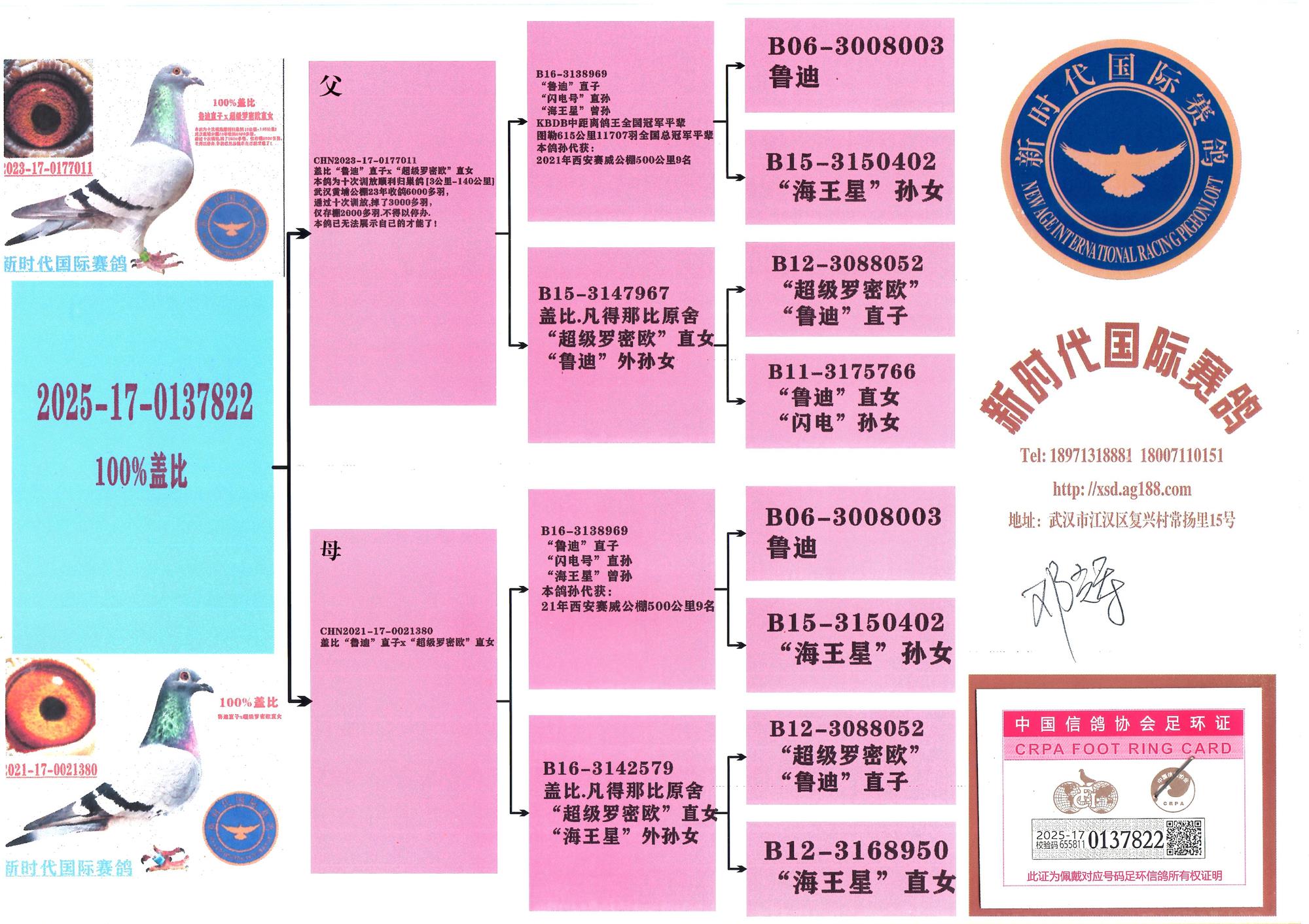 魯?shù)?br>2013年KBDB中距離鴿王全國冠軍之父親