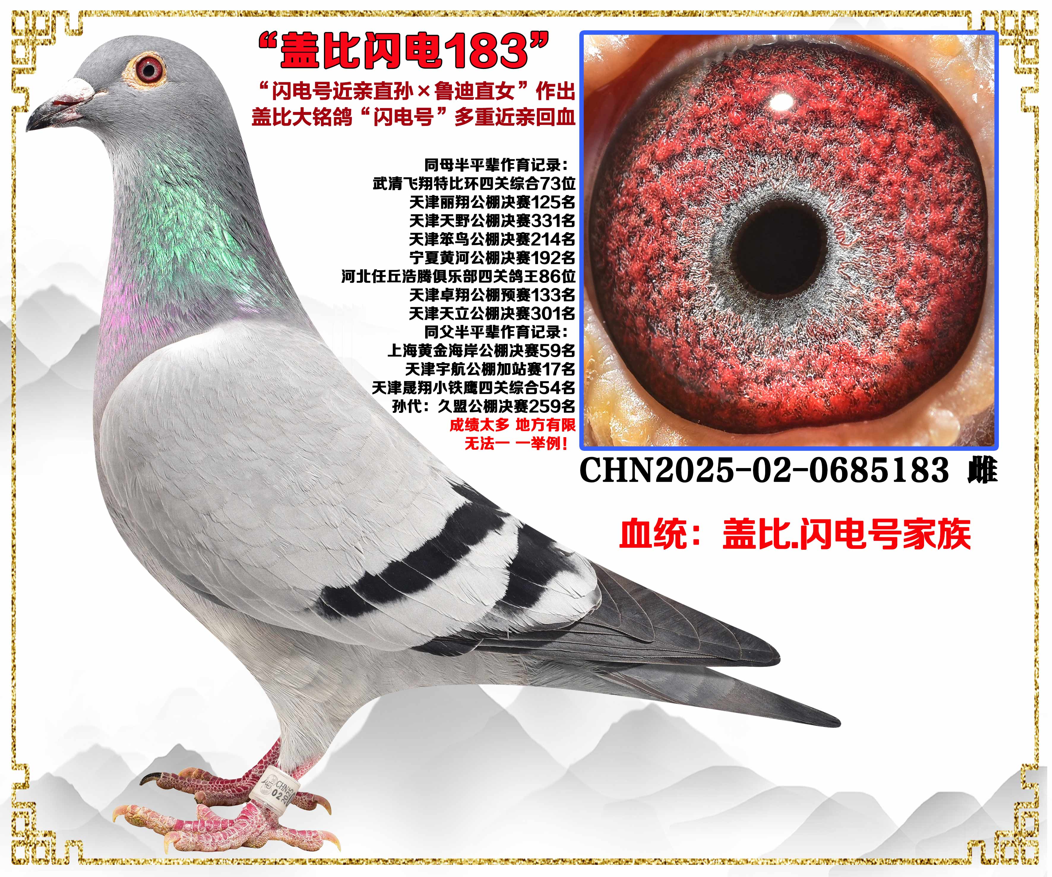 蓋比“閃電號近親直孫×魯?shù)现迸弊鞒?br>大銘鴿“閃電號”家族多重近親回血