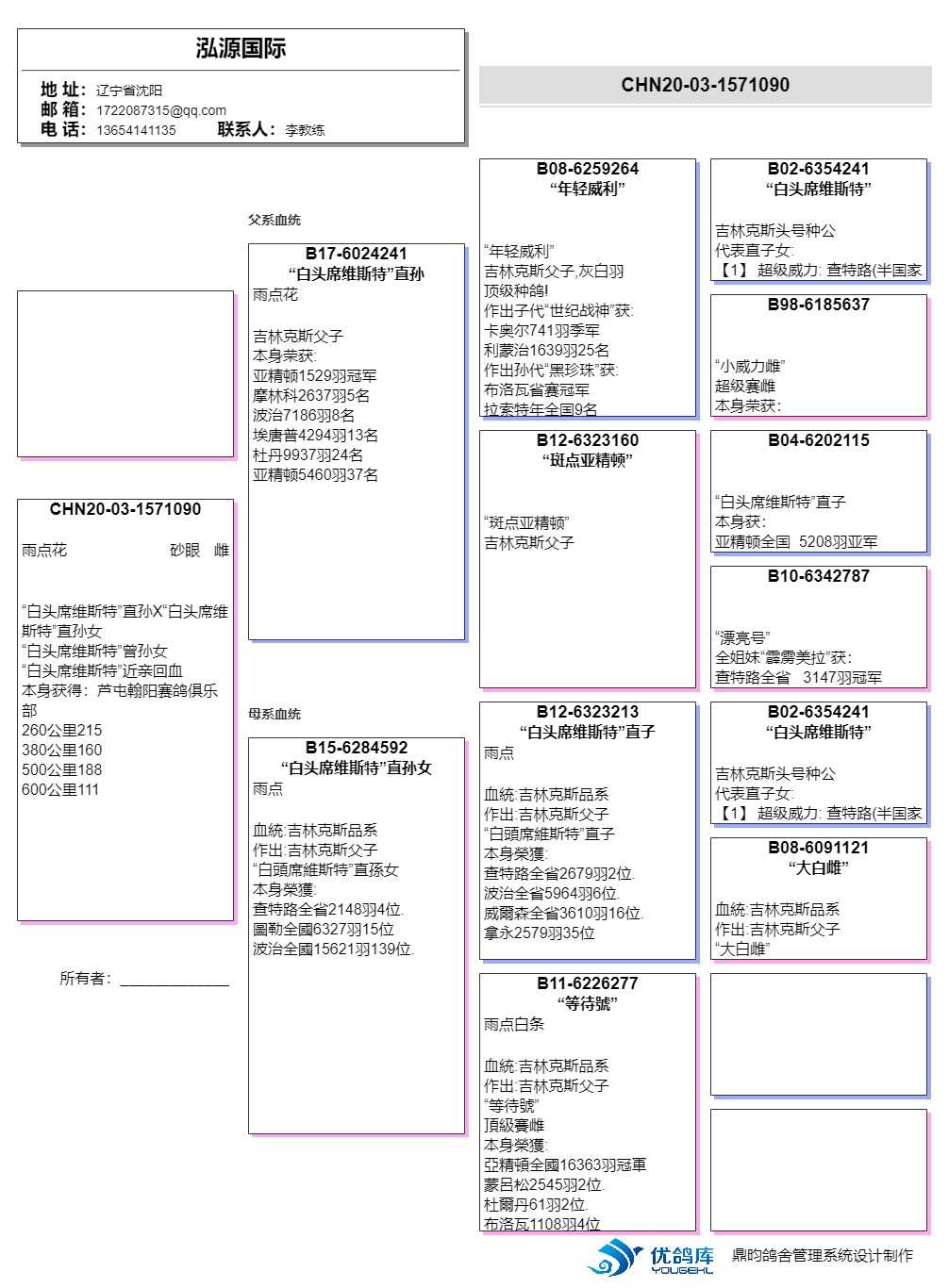 本身獲得:蘆屯翰陽賽鴿俱樂部