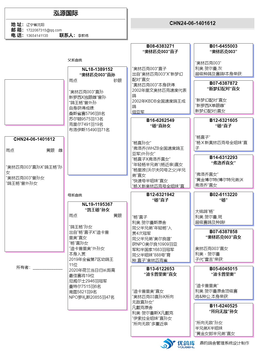 “奧林匹克003″直孫X“鴿王楊”孫女