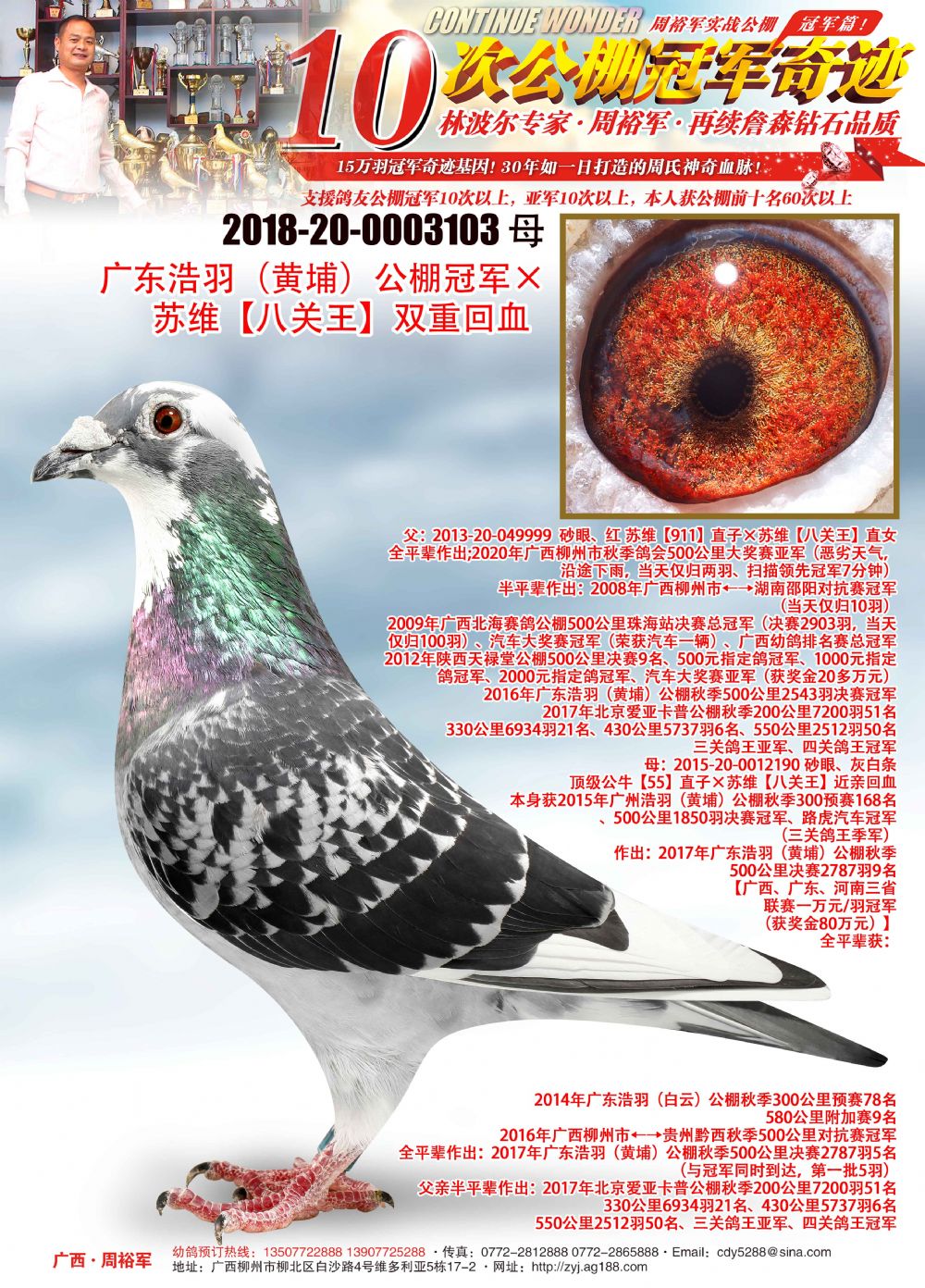 2018-20-0003103 黃眼、雨白條 ♀ 廣東浩羽(黃埔)公棚冠軍×蘇維【八關(guān)王】雙重回血