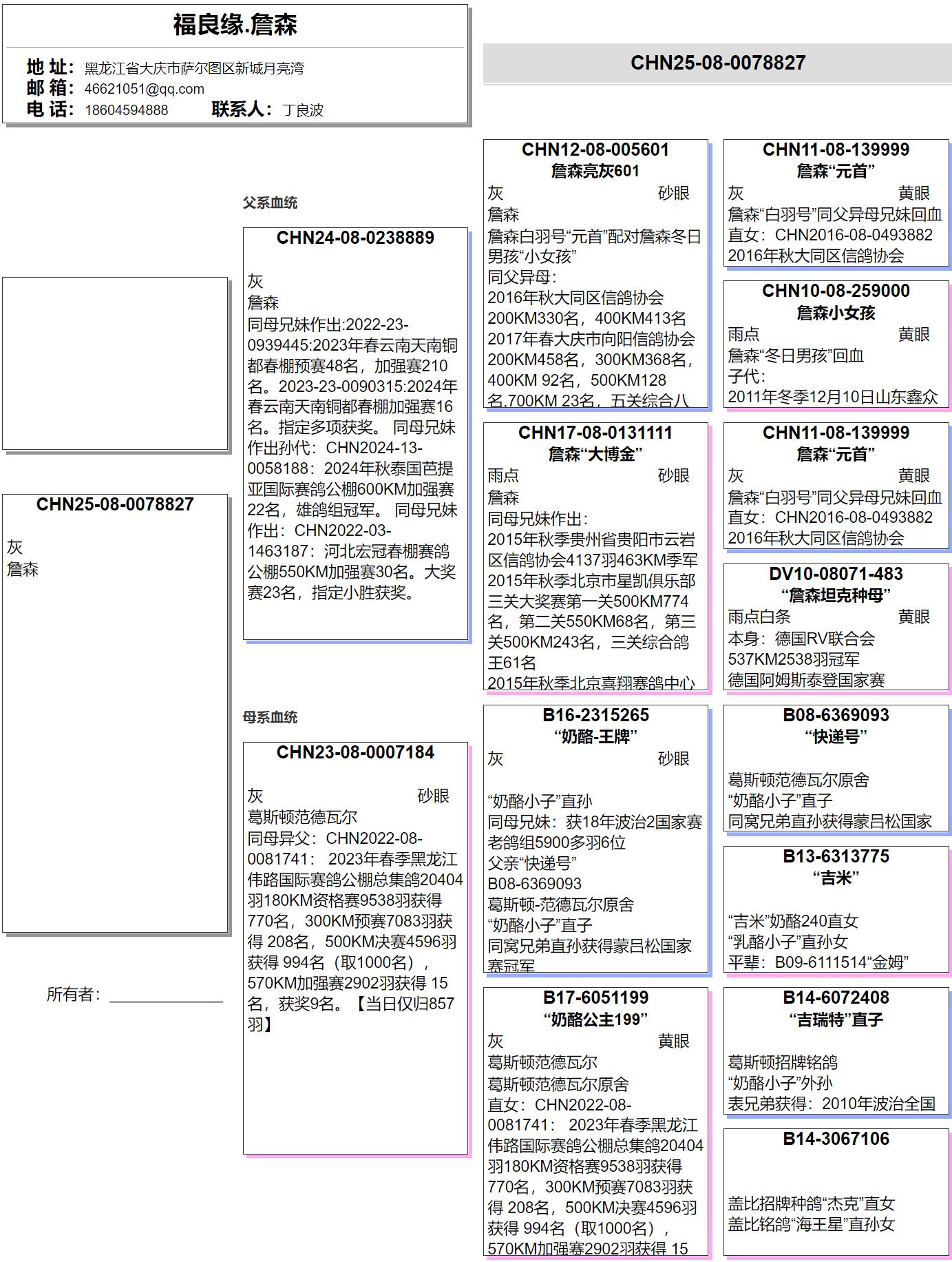 曾外祖父:B14-6072408 葛斯頓招牌銘鴿“奶酪小子”外孫