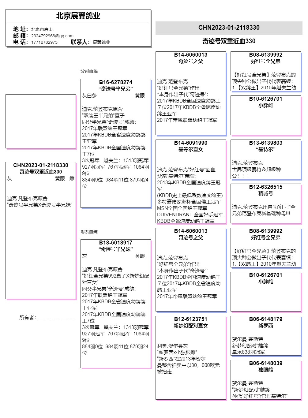 - 當(dāng)前查看拍賣鴿:奇跡號(hào)雙重近血8330
