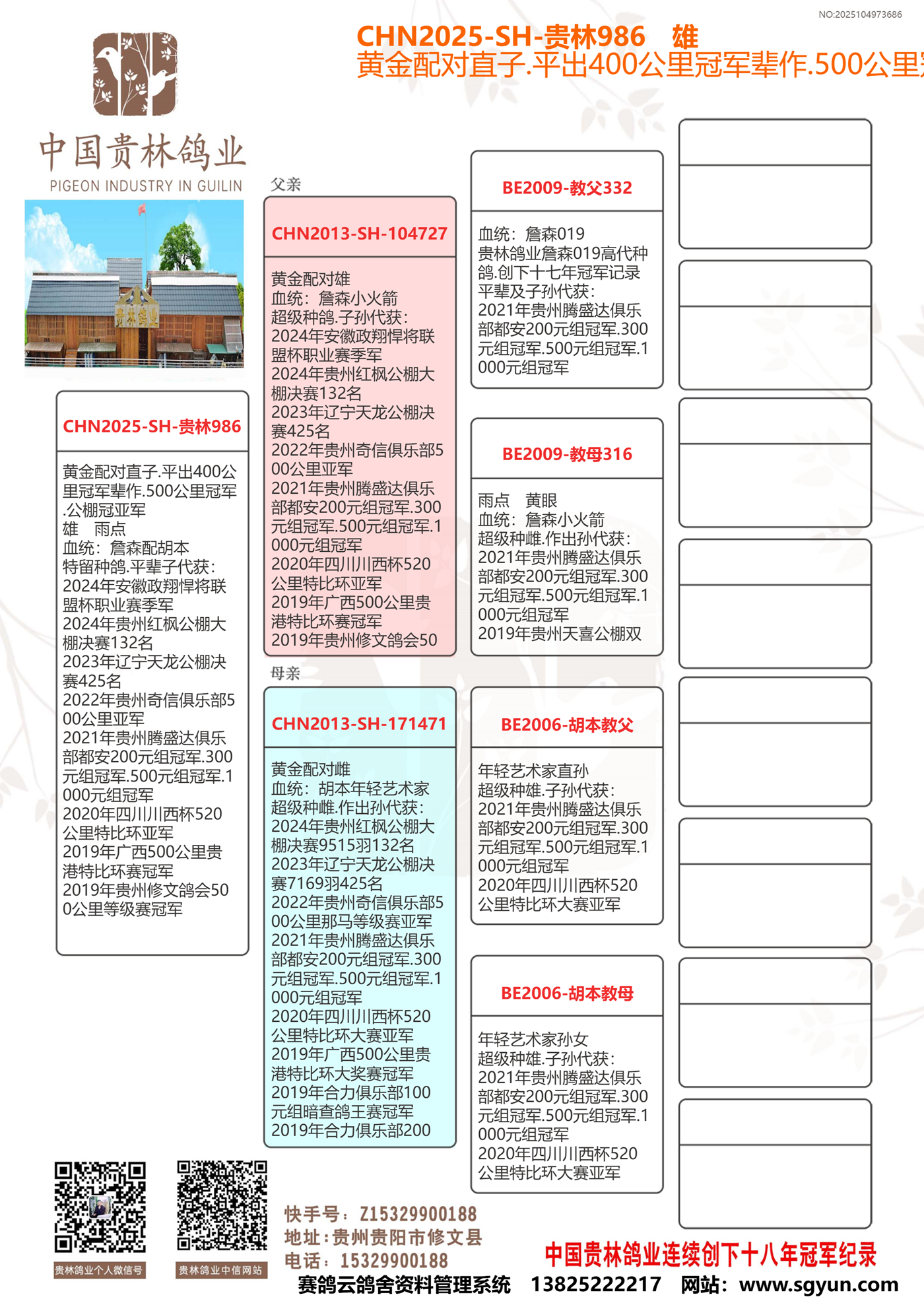 ★貴林鴿業(yè)2006年至2024年連續(xù)創(chuàng)下十八年冠軍記錄!200公里冠軍.300公里冠軍.400公里冠軍.500公里冠軍.公棚冠軍.特比環(huán)冠軍.三關(guān)鴿王冠軍.四關(guān)鴿王冠軍.大小冠軍無一缺席!