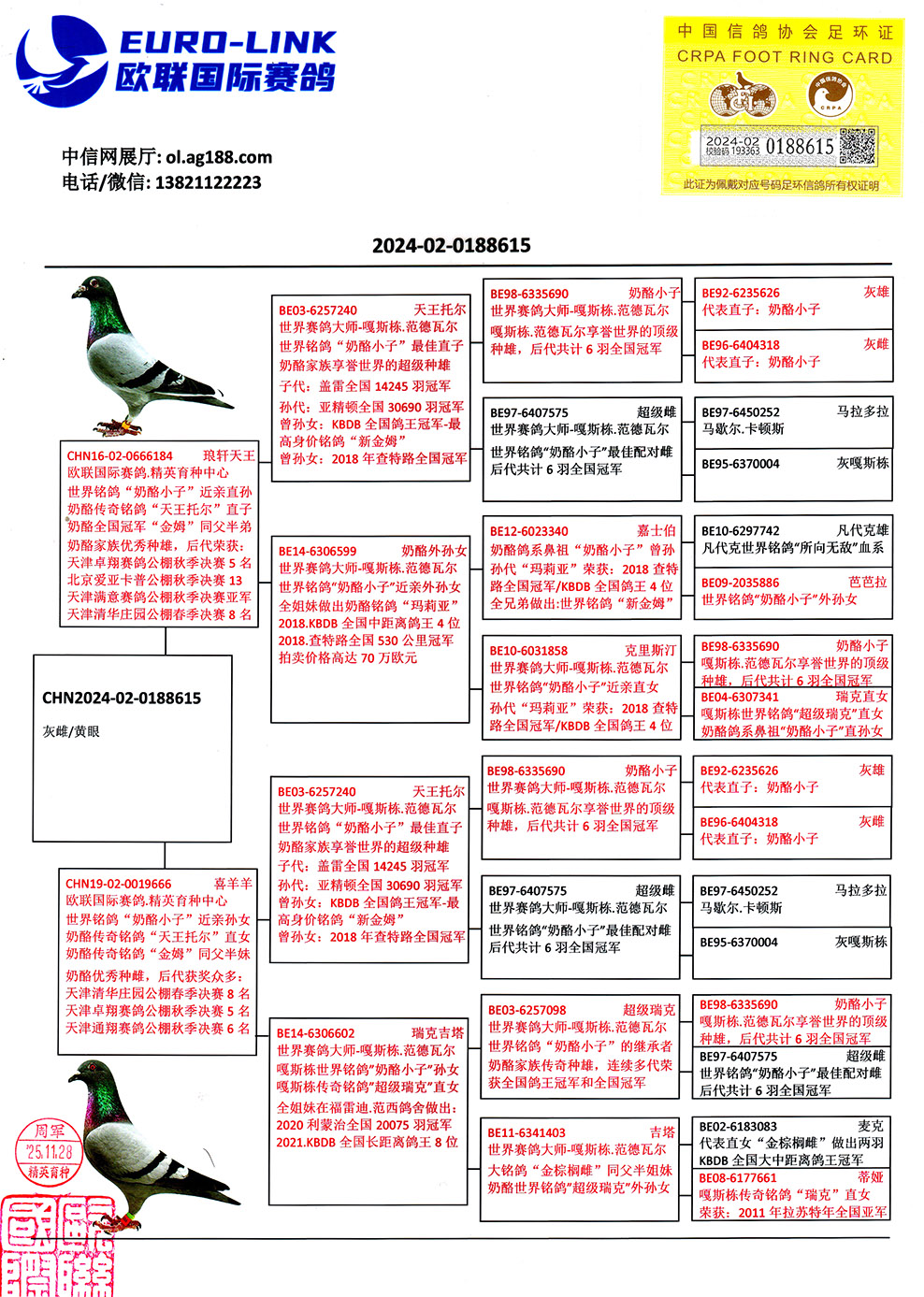 1615698 奶酪家族四關(guān)鴿王精粹薈萃 ¥3000元 1次