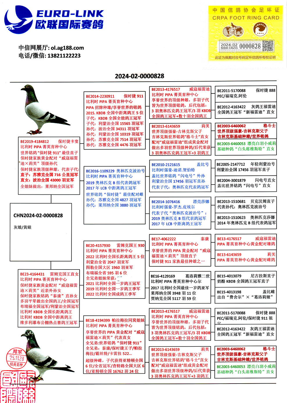 1615698 奶酪家族四關(guān)鴿王精粹薈萃 ¥3000元 1次
