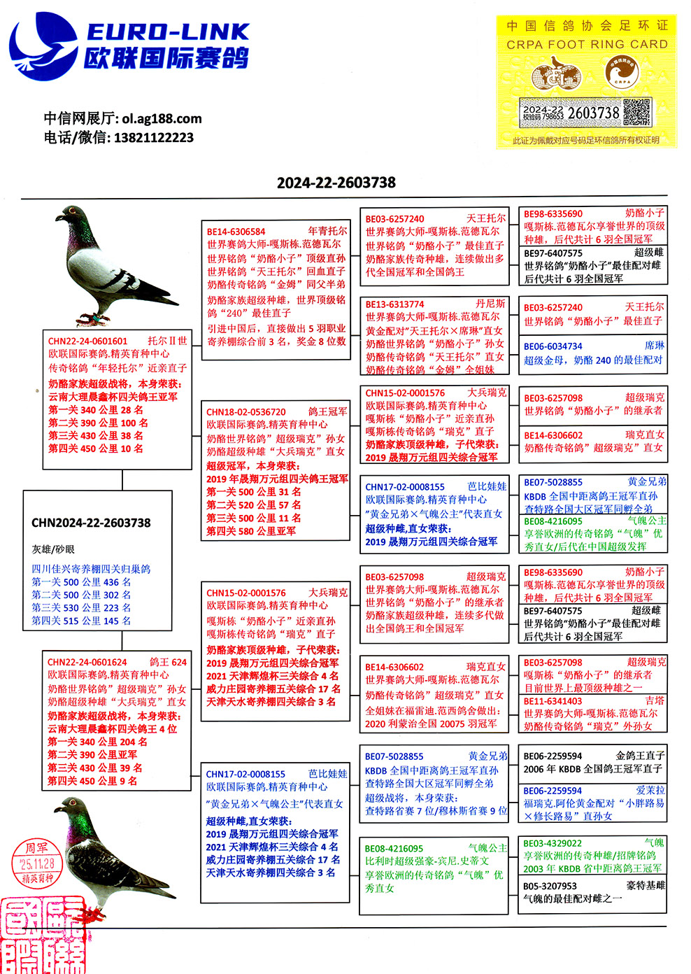 1615696 奶酪世界銘鴿“240”近親直孫女 ¥3000元 0次