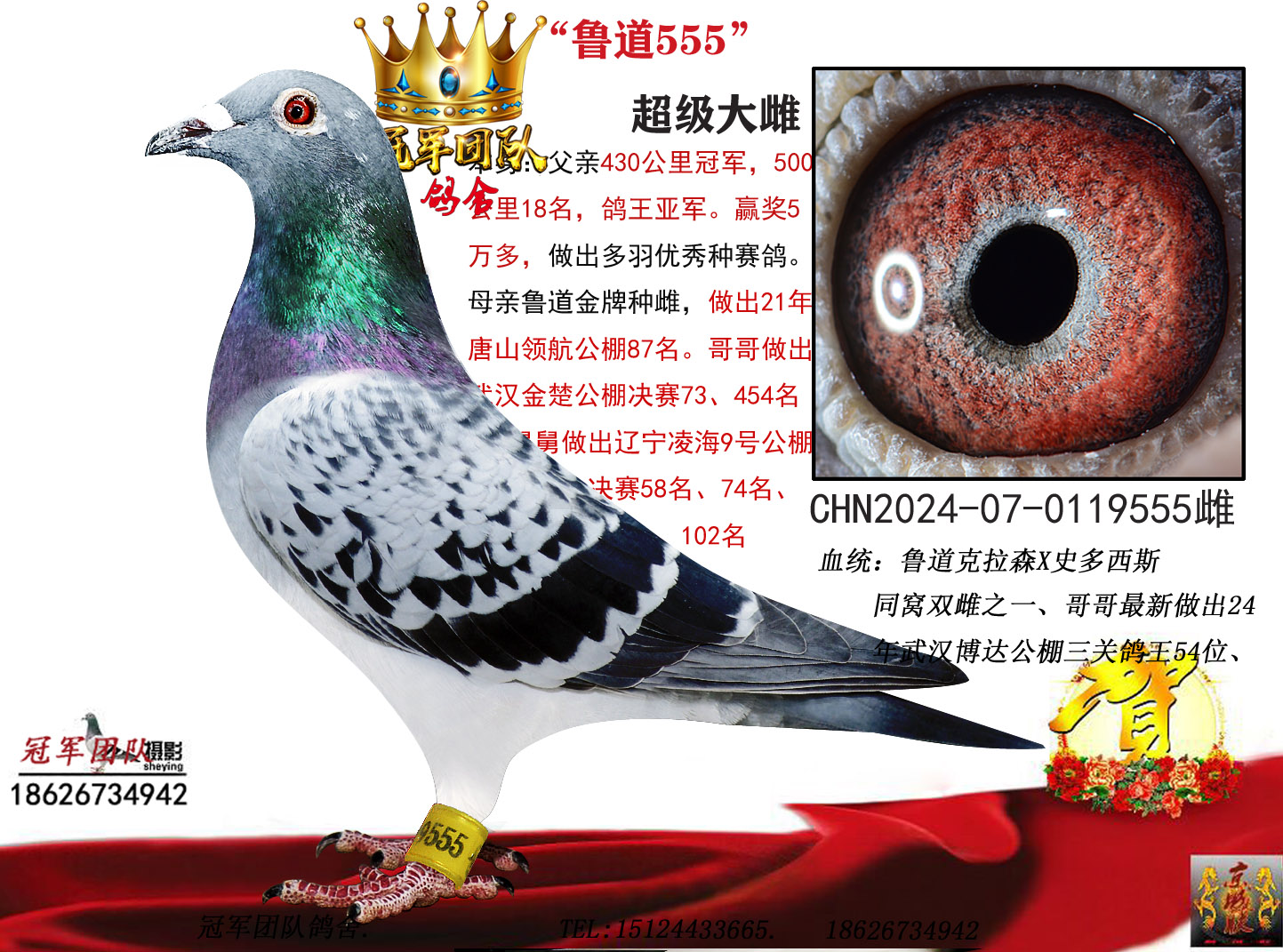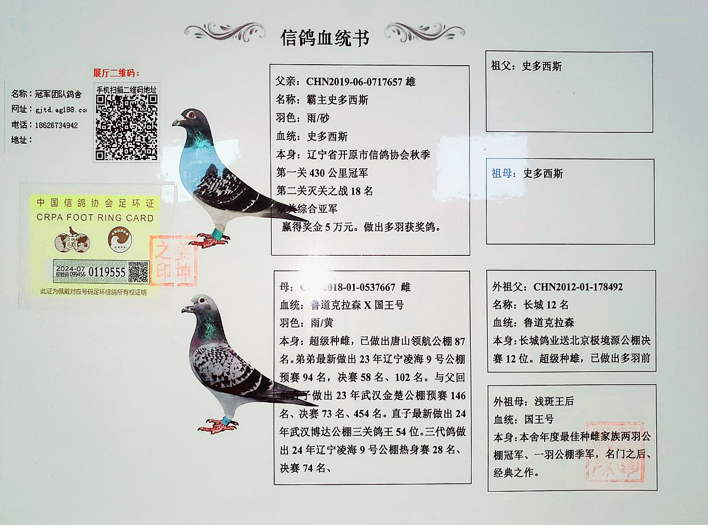血統(tǒng)書足環(huán)卡隨鴿發(fā)出,低價位高品質幼鴿,種賽皆宜。良心做人,所有成績血統(tǒng)假一賠百,不做虛假宣傳!當曖贅氪菩塾啥嗄昃楹屯雅卸轄齬┎慰跡�