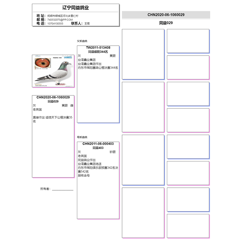 3、注明:請(qǐng)注意看種鴿和血統(tǒng)圖片,有的種鴿環(huán)卡丟失,有些獎(jiǎng)鴿無環(huán)卡和獎(jiǎng)狀和血統(tǒng),介意請(qǐng)勿出價(jià);