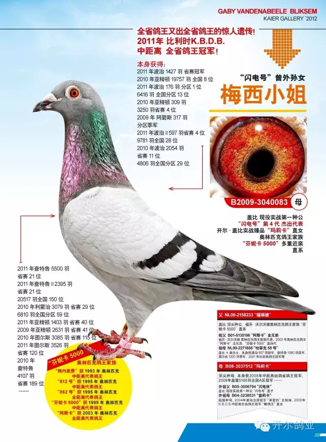 【邦女郎】:大銘鴿【閃電號】直孫女BELG2009-3095007,此鴿開爾22萬元引進(jìn)