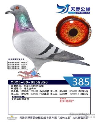 25年秋唐山陽光大棚決賽625名 CHN2025-03-0552091 本身賽績:25年秋唐山陽光大棚決賽500公里625名同母兄妹賽績:25年春唐山尼爾森決賽515公里殿軍,精英賽冠軍,383公里318名 瀏覽量:852 次 [詳細介紹] [詢價]