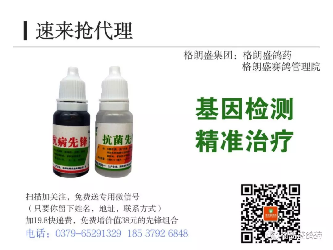 3、對(duì)亞健康鴿群和帶毒鴿群、易感鴿群用“衣支靈、瘟感毒克”飲水2-3天,做到藥物預(yù)防,降低賽賽鴿易感性。