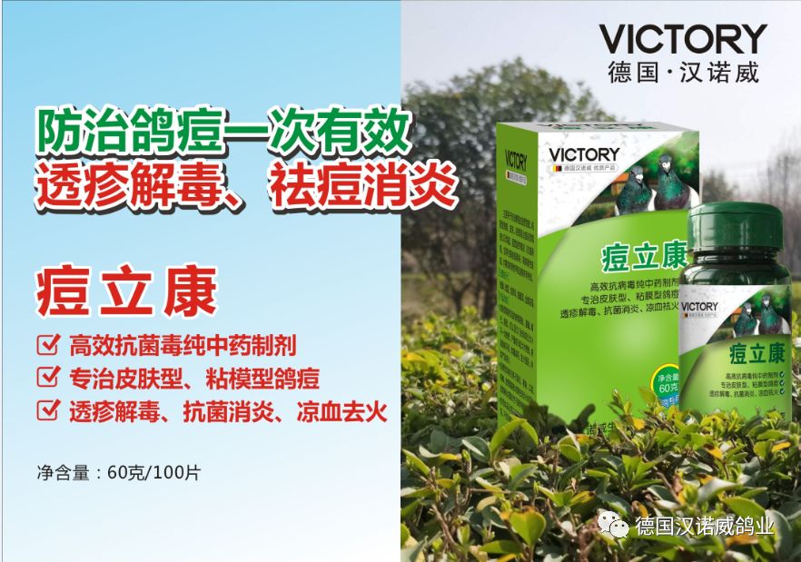 痘立康:高效抗病毒純中藥制劑,專治皮膚型、粘膜型鴿痘,透疹解毒、抗菌消炎、涼血祛火。